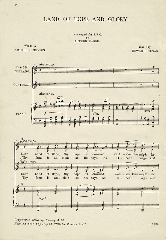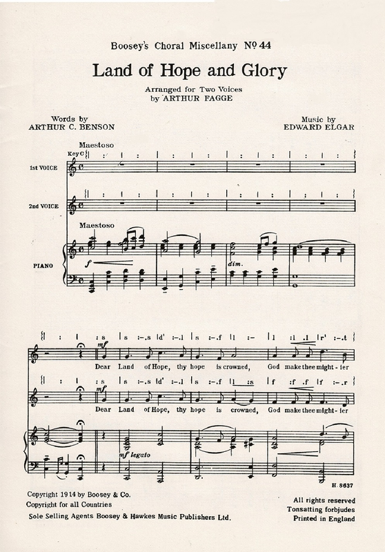 The last section, Land of hope and glory was also arranged and expanded as a separate work for voice, chorus and orchestra.