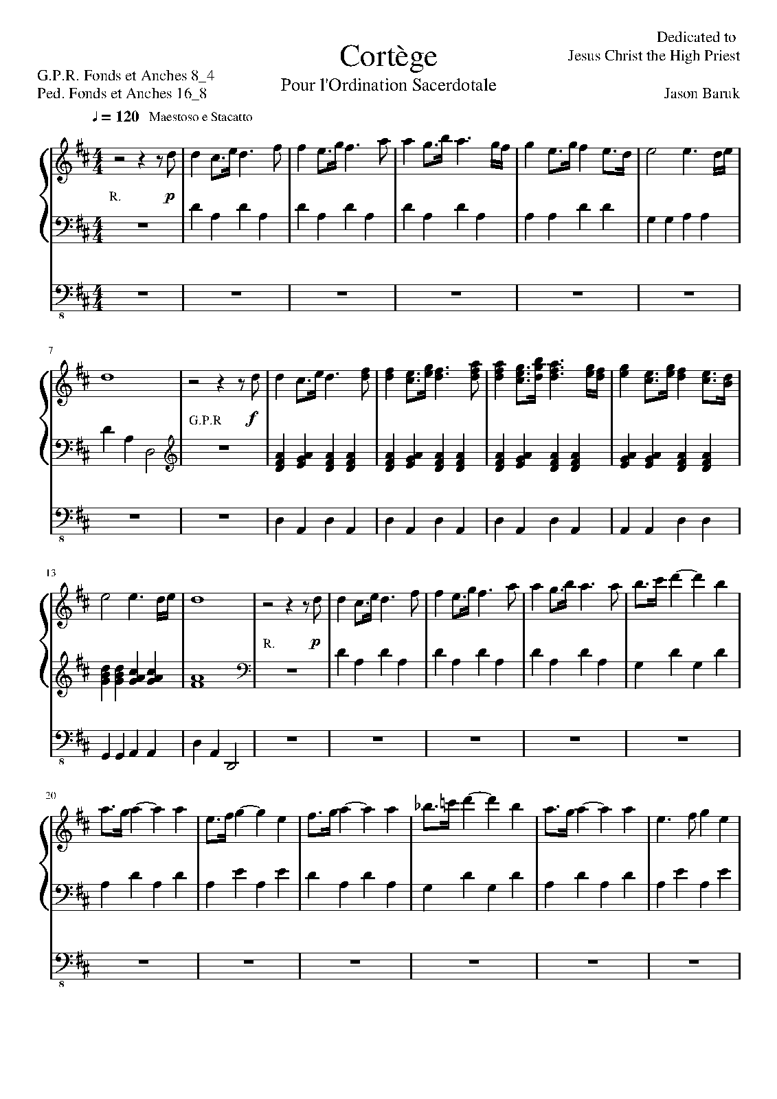 | Genre Categories | Corteges; For organ; Scores featuring the organ; For 1 player |