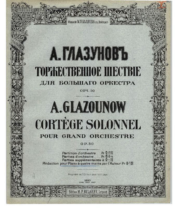 Leipzig: M.P. Belaieff, 1895. Plate 1030.