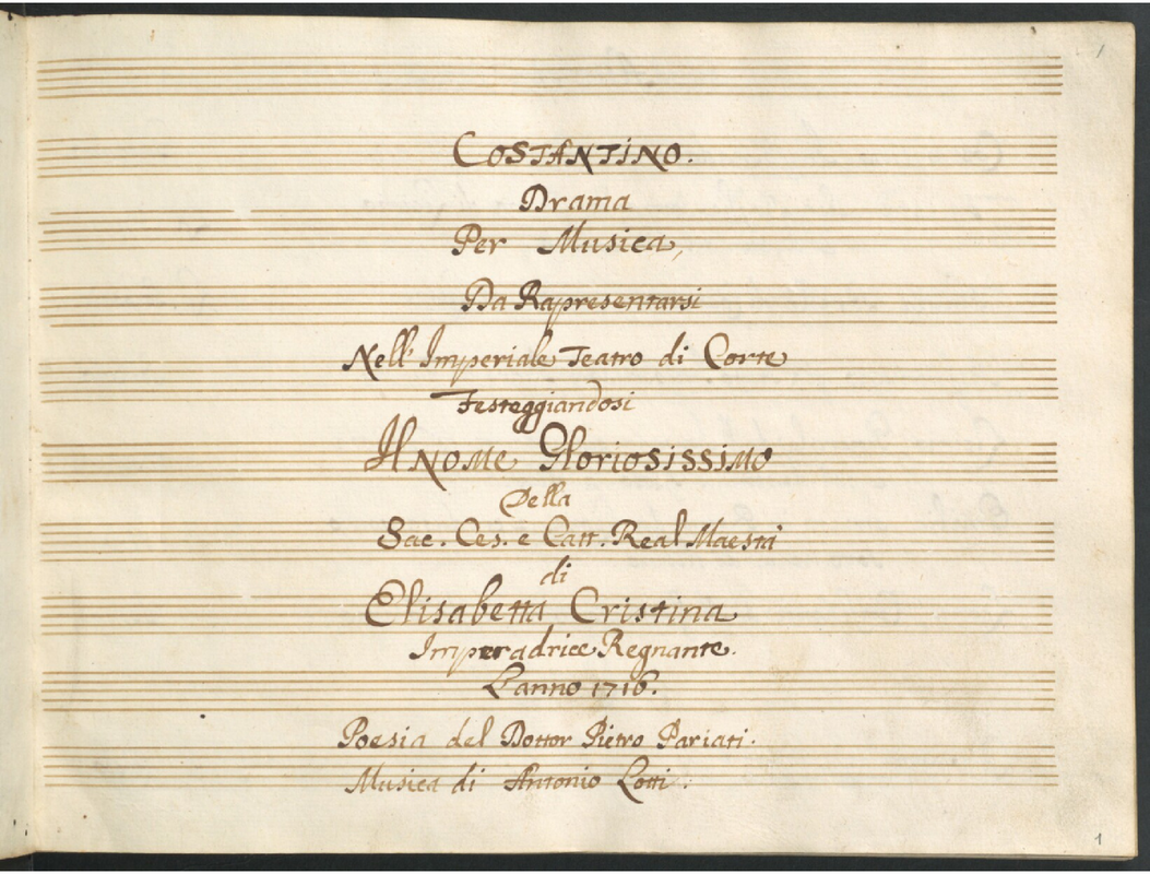 | Alternative. Title | Costantino. Drama per musica da rappresentarsi [...] l'anno 1716. |