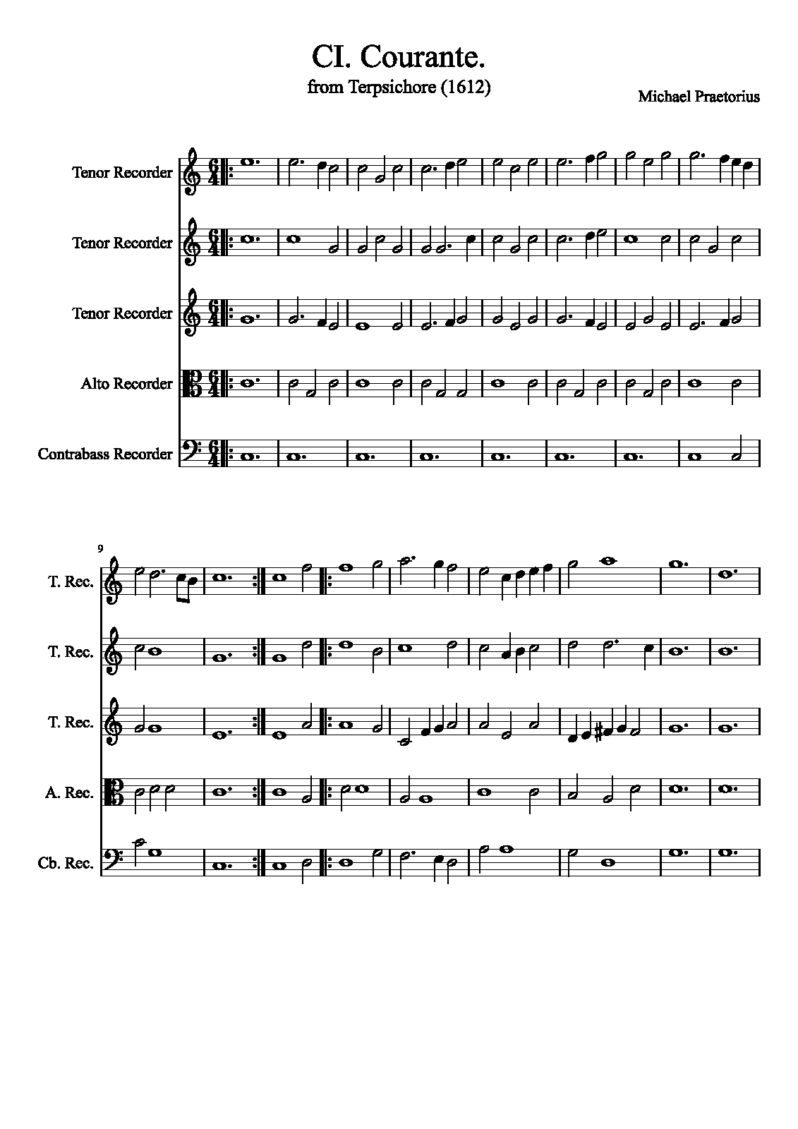 | Extra Information | These pieces were assembled and arranged by Praetorius for his 1612 collection. It is unknown how many, or if any, of the works in the collection were actually composed by Praetorius as opposed to being popular dance tunes arranged by him. The instrumentation is not specified in the original, and simply listed as "à 5". |