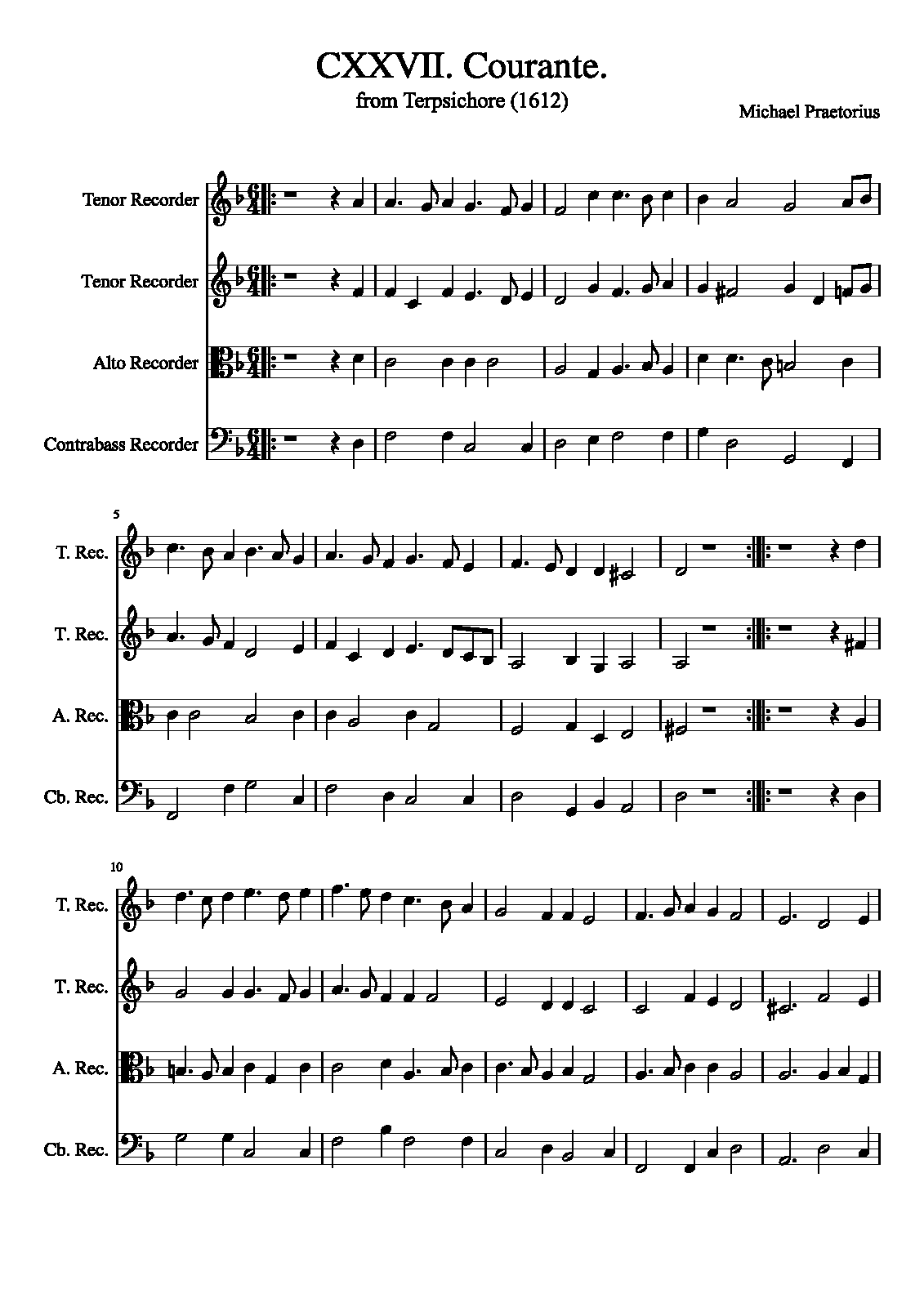 | Extra Information | These pieces were assembled and arranged by Praetorius for his 1612 collection. It is unknown how many, or if any, of the works in the collection were actually composed by Praetorius as opposed to being popular dance tunes arranged by him. The instrumentation is not specified in the original, and simply listed as "à 4". |