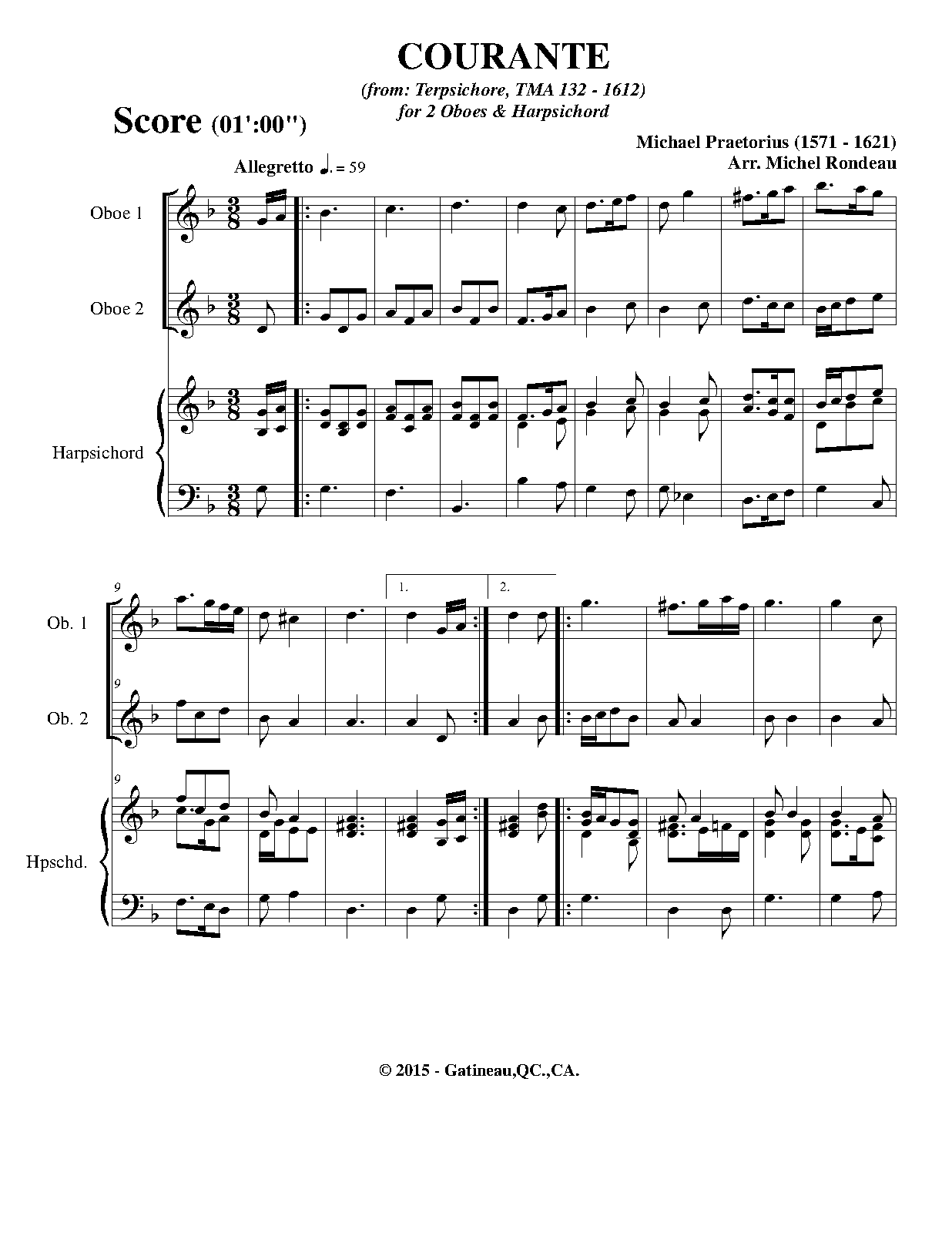 | Extra Information | These pieces were assembled and arranged by Praetorius for his 1612 collection. It is unknown how many, or if any, of the works in the collection were actually composed by Praetorius as opposed to being popular dance tunes arranged by him. The instrumentation is not specified in the original, and simply listed as "à 4". |