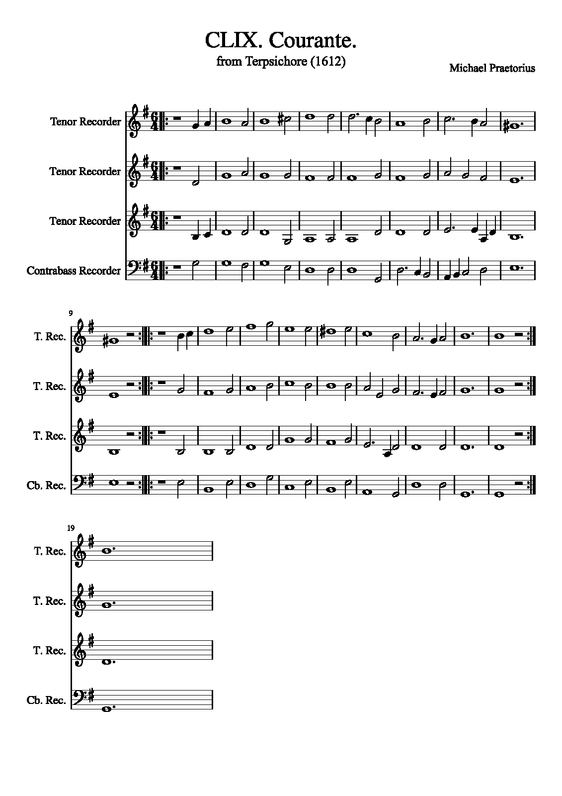 | Extra Information | These pieces were assembled and arranged by Praetorius for his 1612 collection. It is unknown how many, or if any, of the works in the collection were actually composed by Praetorius as opposed to being popular dance tunes arranged by him. The instrumentation is not specified in the original, and simply listed as "à 4". |