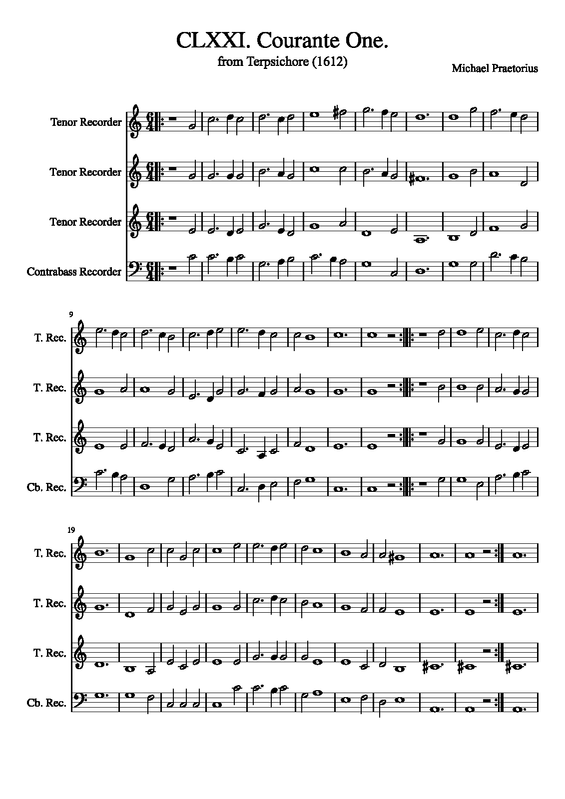 | Extra Information | These pieces were assembled and arranged by Praetorius for his 1612 collection. It is unknown how many, or if any, of the works in the collection were actually composed by Praetorius as opposed to being popular dance tunes arranged by him. The instrumentation is not specified in the original, and simply listed as "à 4". |