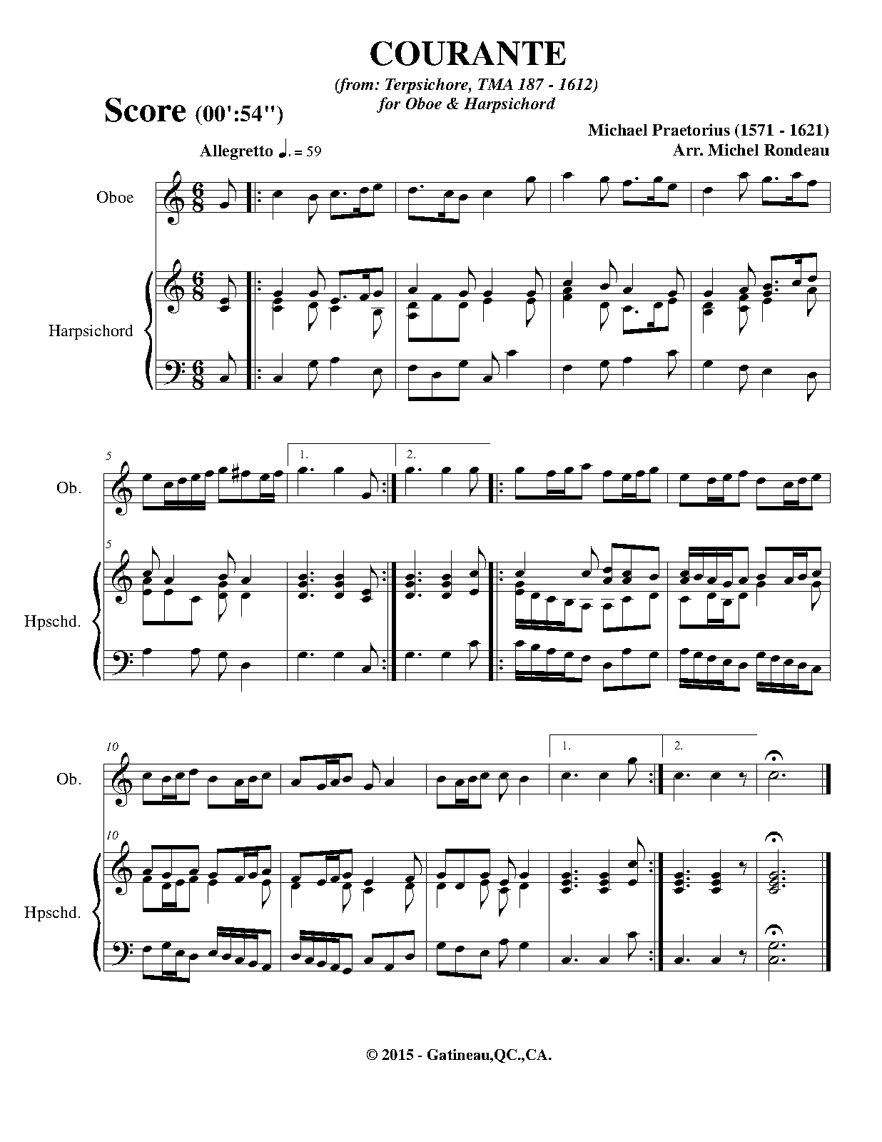 | Extra Information | These pieces were assembled and arranged by Praetorius for his 1612 collection. It is unknown how many, or if any, of the works in the collection were actually composed by Praetorius as opposed to being popular dance tunes arranged by him. The instrumentation is not specified in the original, and simply listed as "à 4". |