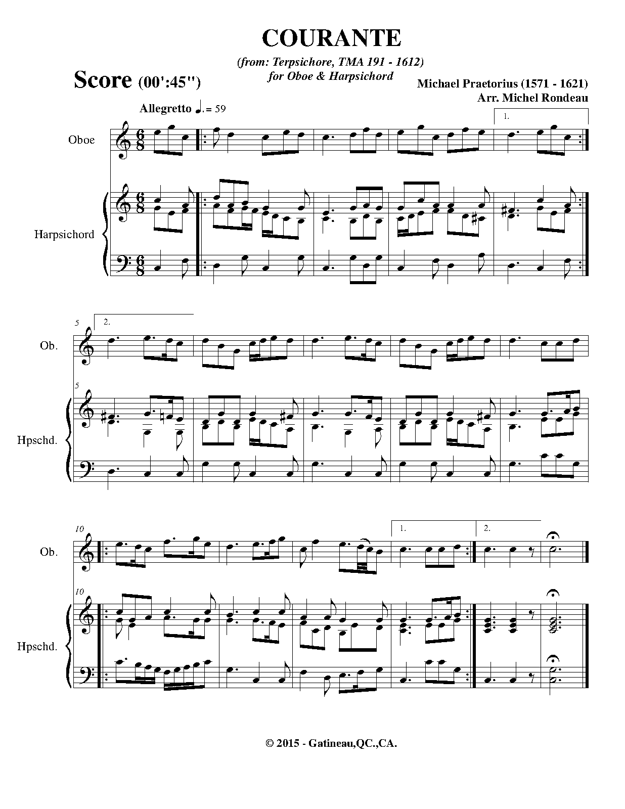 | Extra Information | These pieces were assembled and arranged by Praetorius for his 1612 collection. It is unknown how many, or if any, of the works in the collection were actually composed by Praetorius as opposed to being popular dance tunes arranged by him. The instrumentation is not specified in the original, and simply listed as "à 4". |
