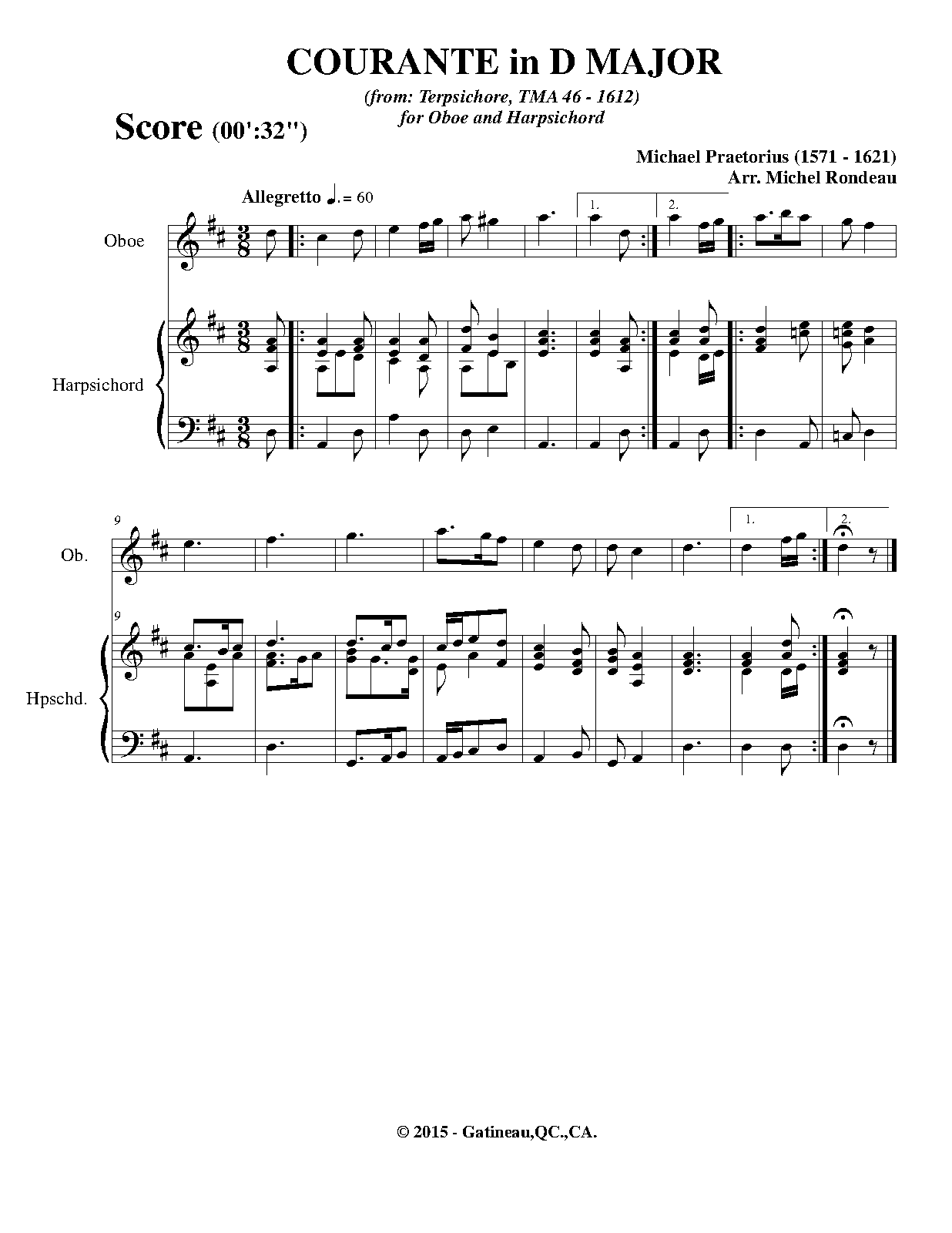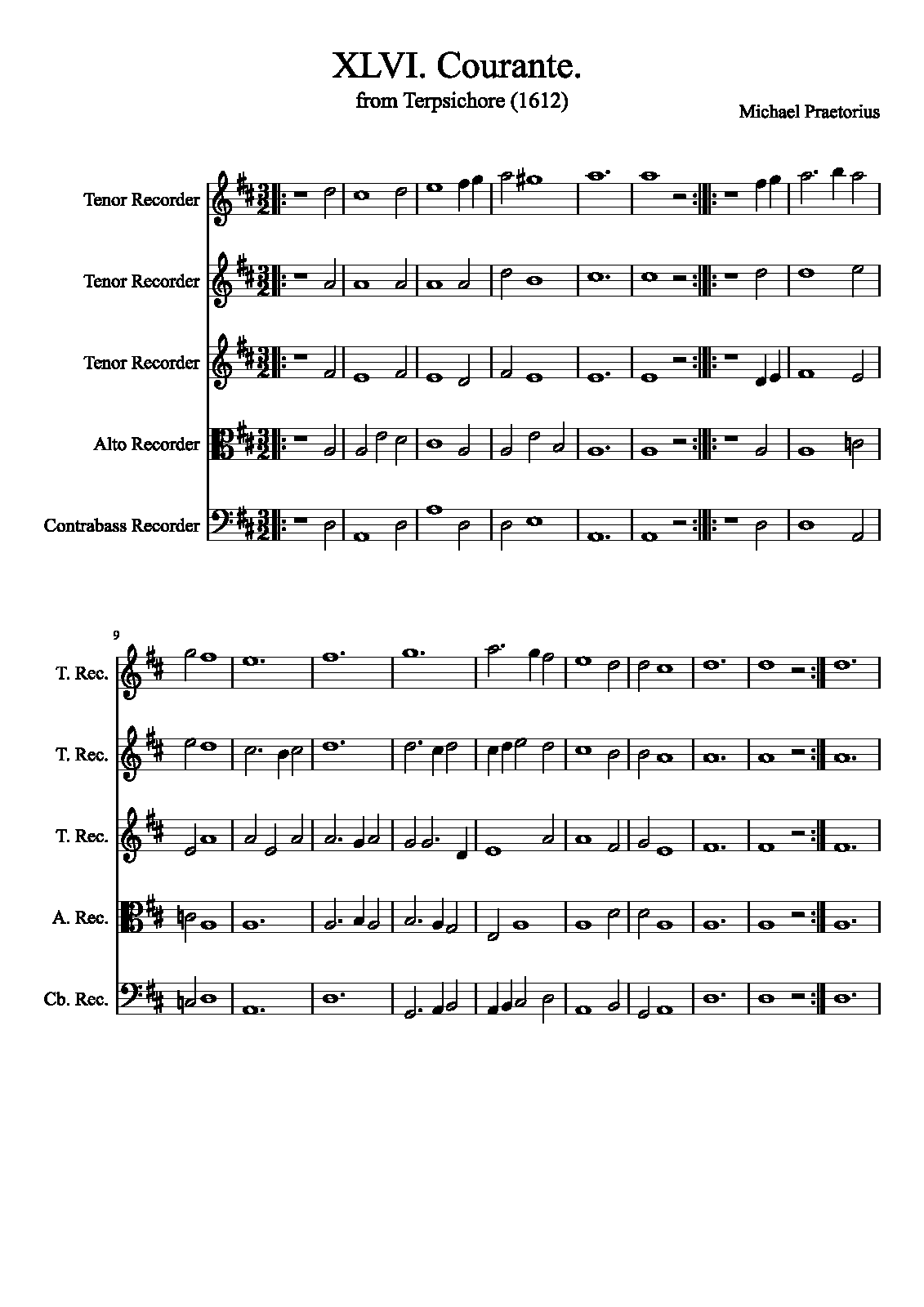 | Extra Information | These pieces were assembled and arranged by Praetorius for his 1612 collection. It is unknown how many, or if any, of the works in the collection were actually composed by Praetorius as opposed to being popular dance tunes arranged by him. The instrumentation is not specified in the original, and simply listed as "à 5". |