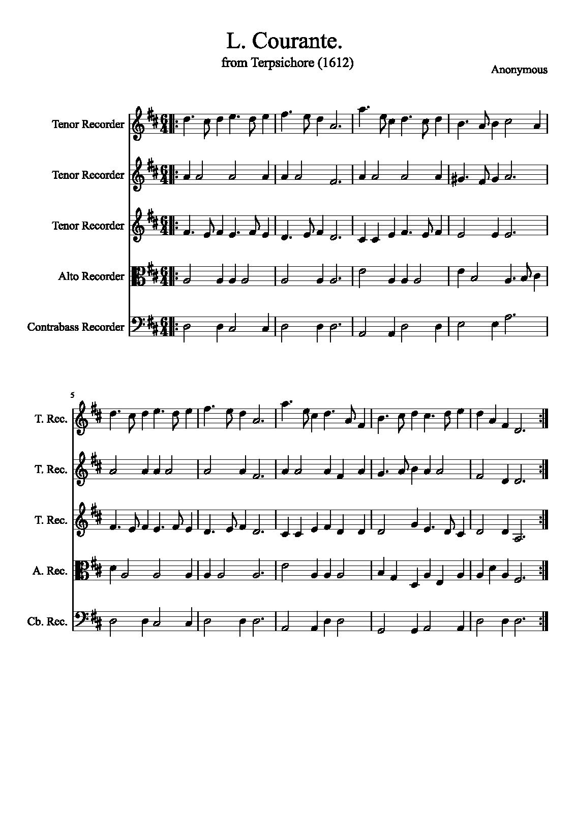 | Genre Categories | Courantes; For 5 instruments; Scores with open instrumentation; |