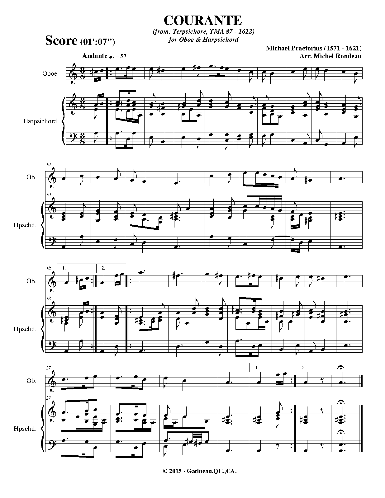 | Extra Information | These pieces were assembled and arranged by Praetorius for his 1612 collection. It is unknown how many, or if any, of the works in the collection were actually composed by Praetorius as opposed to being popular dance tunes arranged by him. The instrumentation is not specified in the original, and simply listed as "à 5". |