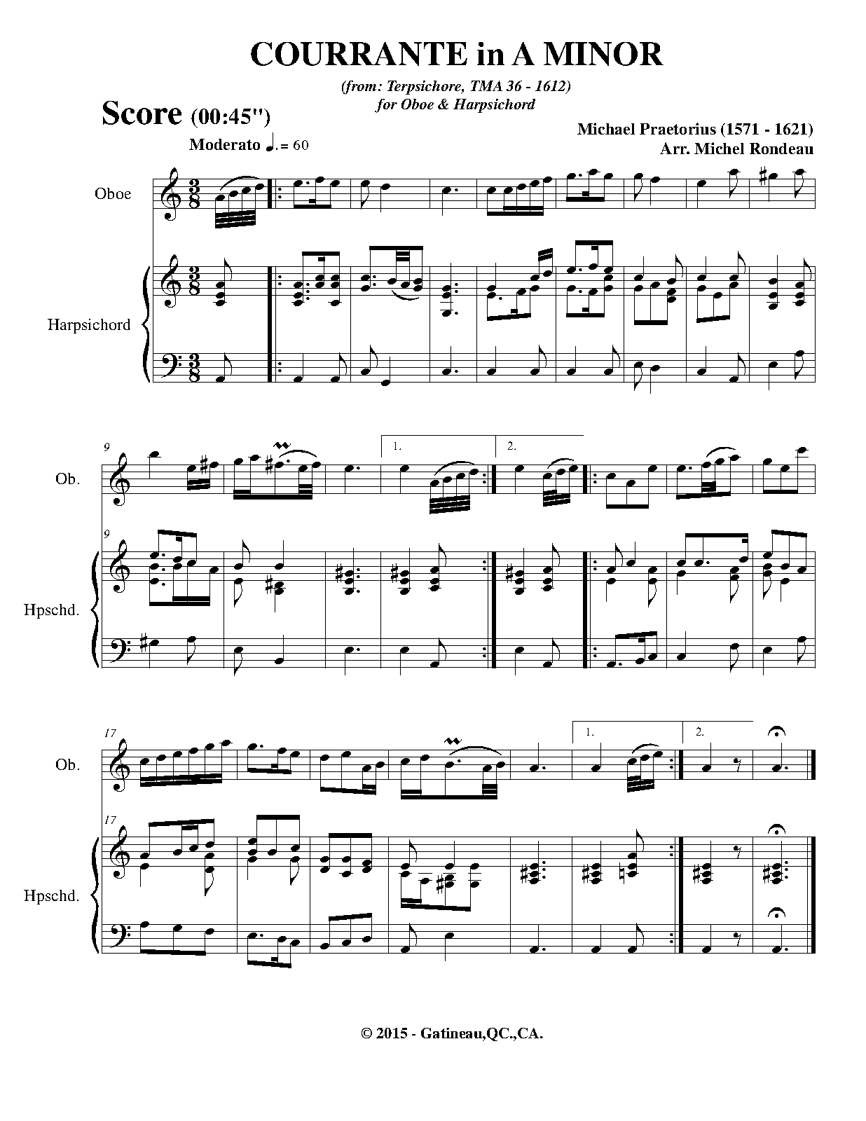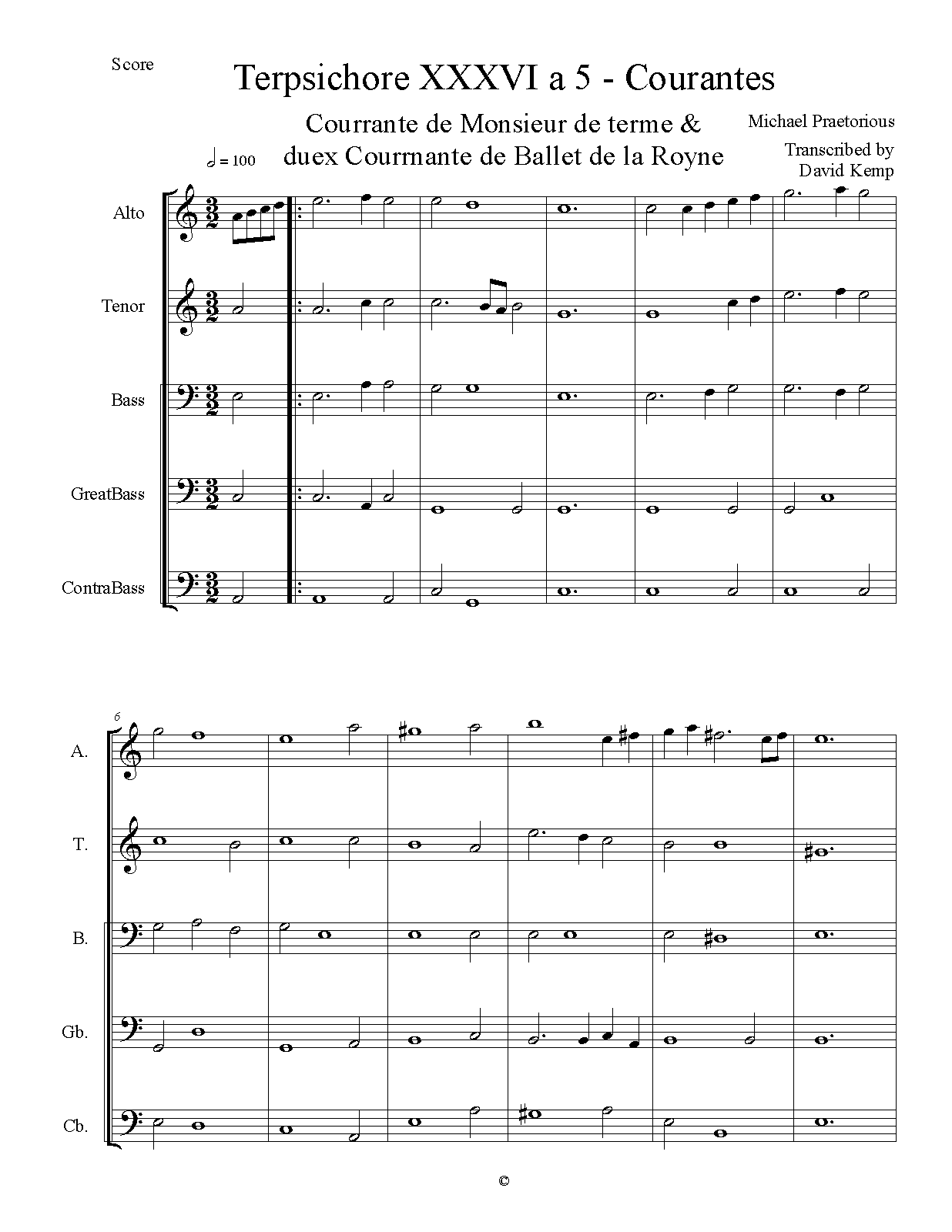 These pieces were assembled and arranged by Praetorius for his 1612 collection. It is unknown how many, or if any, of the works in the collection were actually composed by Praetorius as opposed to being popular dance tunes arranged by him. The instrumentation is not specified in the original, and simply listed as "à 5".