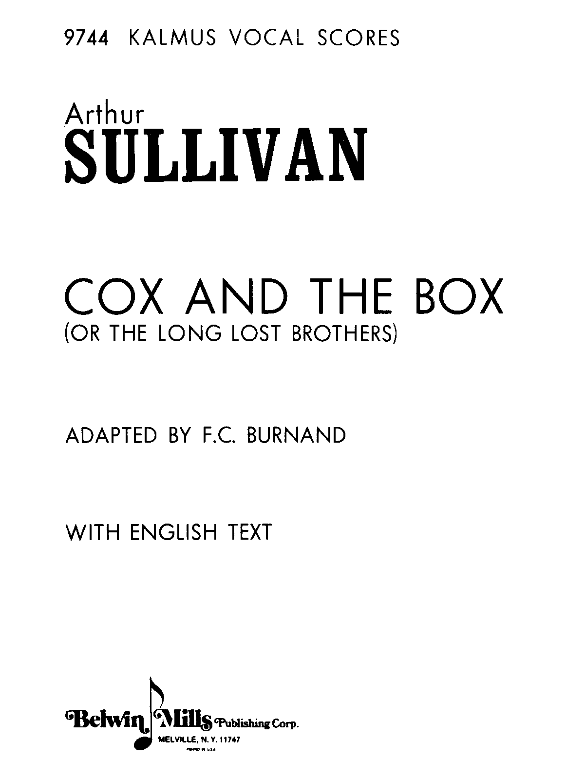 Reprinted Melville, N.Y.: Belwin-Mills/Kalmus Vocal Scores, No. 9744, n.d.(ca.1979).
