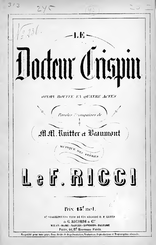 | Work Title | Crispino e la comare ; Le docteur Crispin |