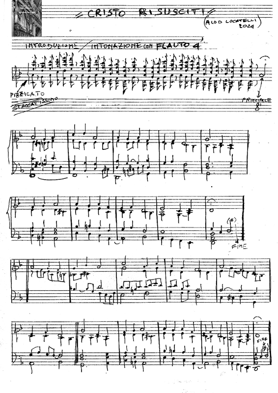 | Extra Information | Armonizzazione per Accompagnamento al canto di assemblea , dopo l'intonazione con flauto 4' (pizzicato - staccatissimo )aggiungere principale 8'. |