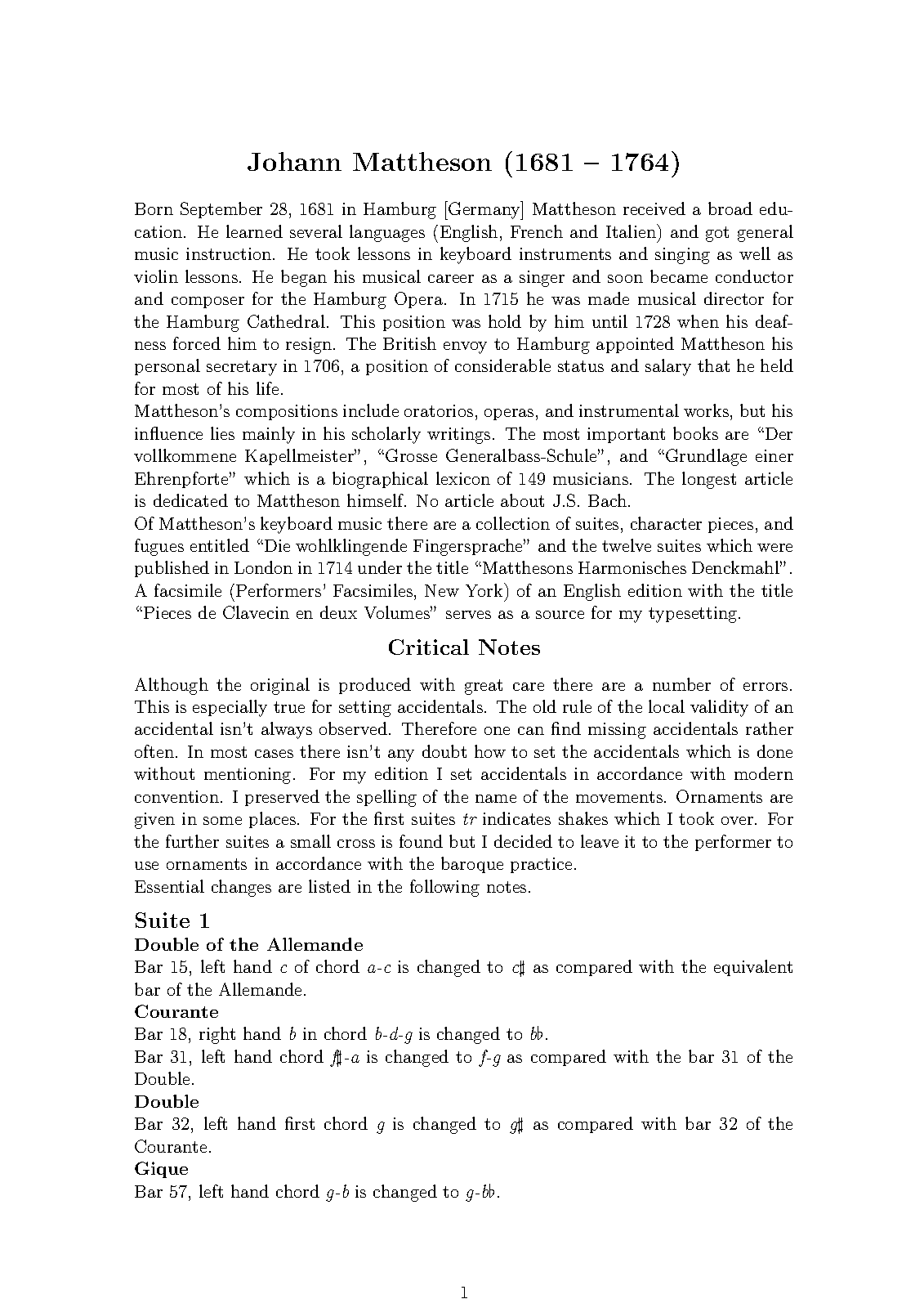 | Work Title | Suites for Harpsichord, Critical Notes |