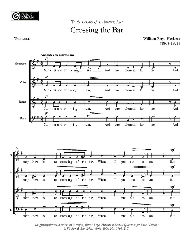 | First Publication. | 1906 in Sacred Quartets for Male Voices |