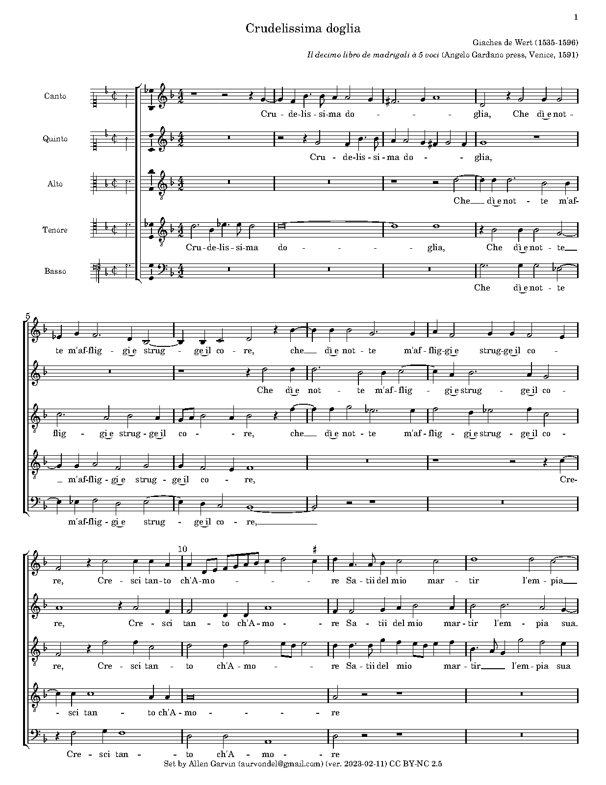 | First Publication | 1591 in Il decimo libro de madrigali à 5 voci (Venice: Angelo Gardano press) |