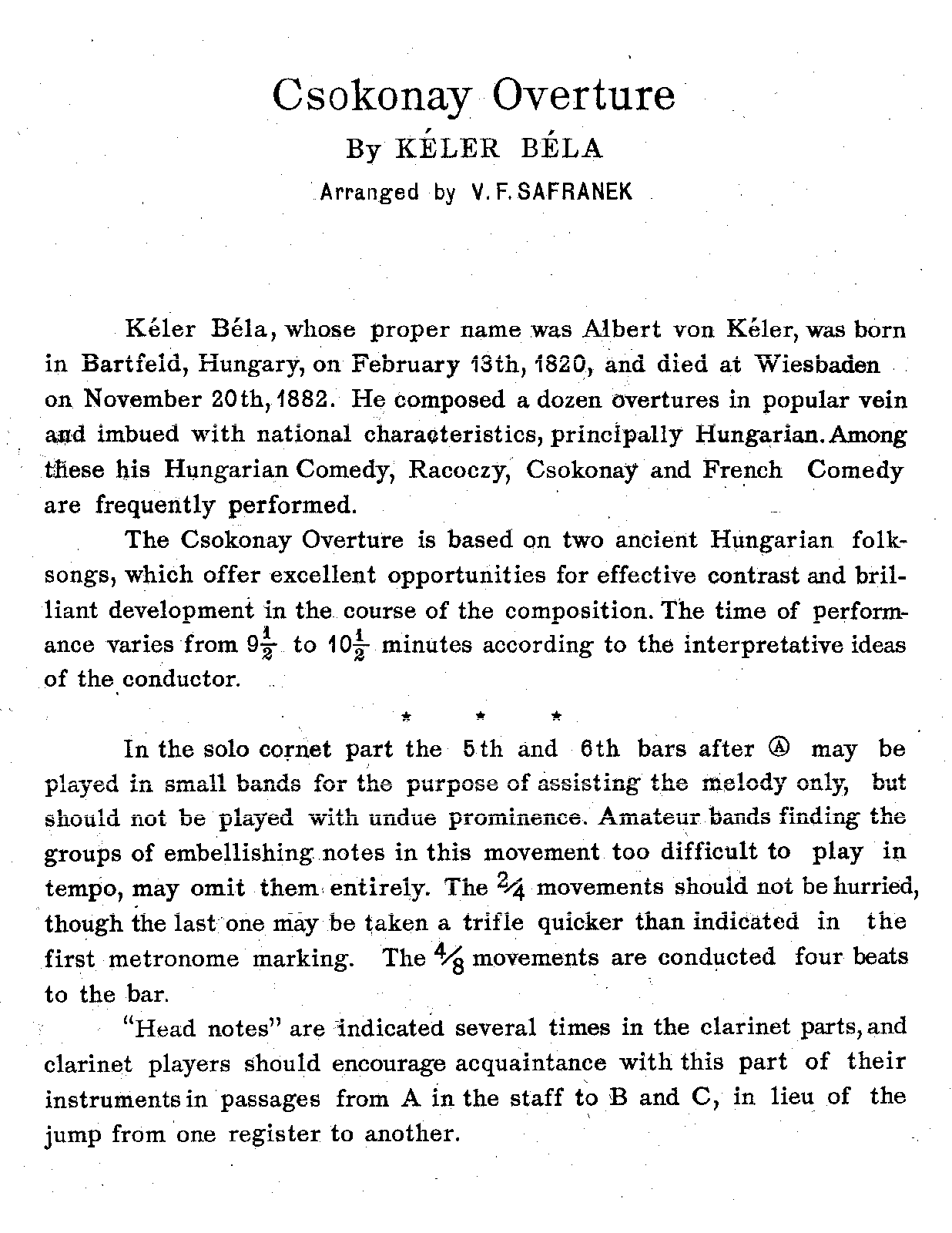 | Alternative. Title | Csokonay-Ouv. unter freier Benutzung zweier altungarischer Volkslieder f. Orch. |
