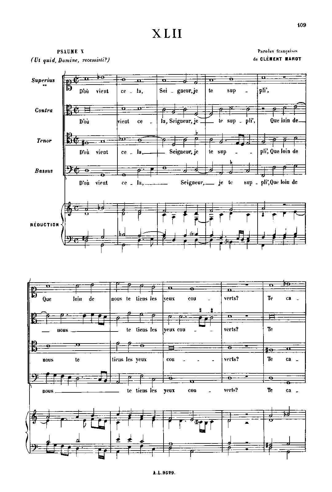 | First Publication. | 1568 in 150 Pseaumes de David (No.42) |