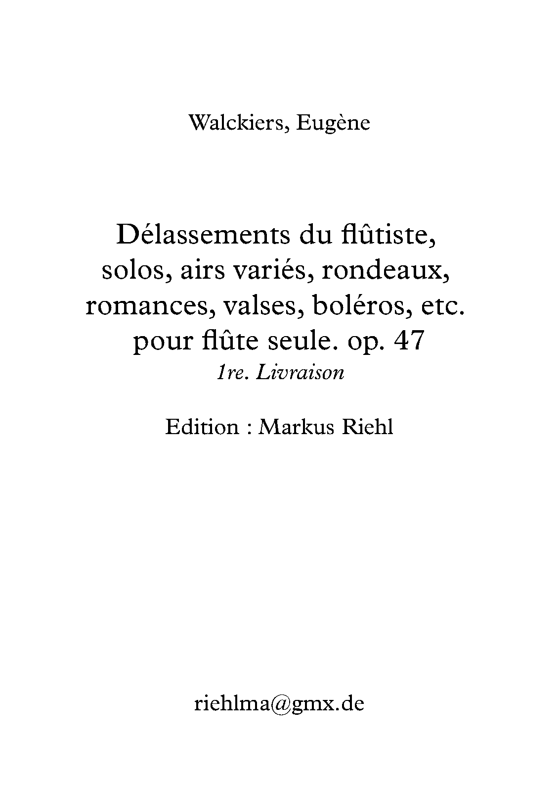 | Alternative. Title | Solos, airs variés, rondeaux, romances, valses, boléros, etc pour flûte seule |