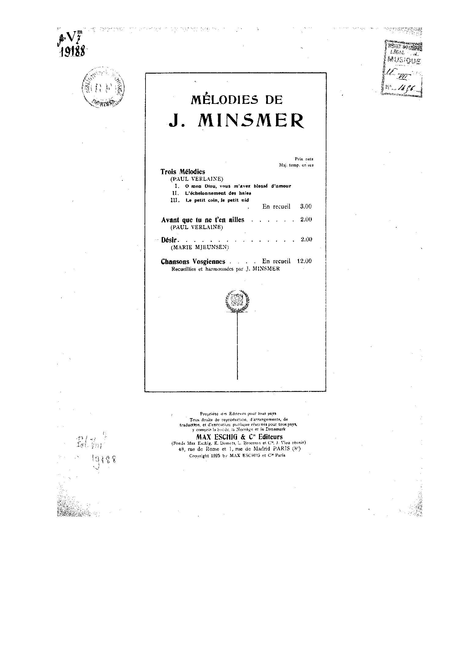 Publisher. Info. Paris: Max Eschig, 1925. Plate M.E.1396.