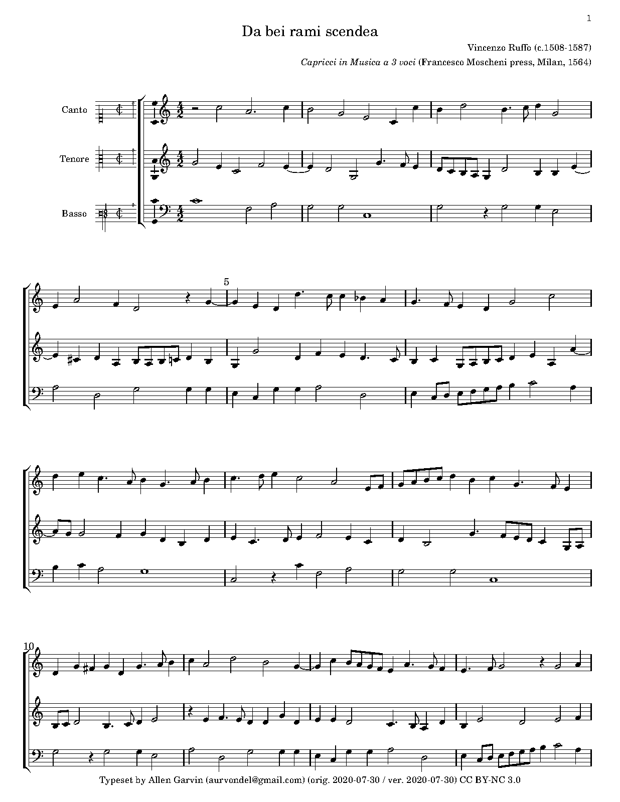 | First Publication | 1564 in Capricci in Musica a 3 voci (Milan: Francesco Moscheni press) |