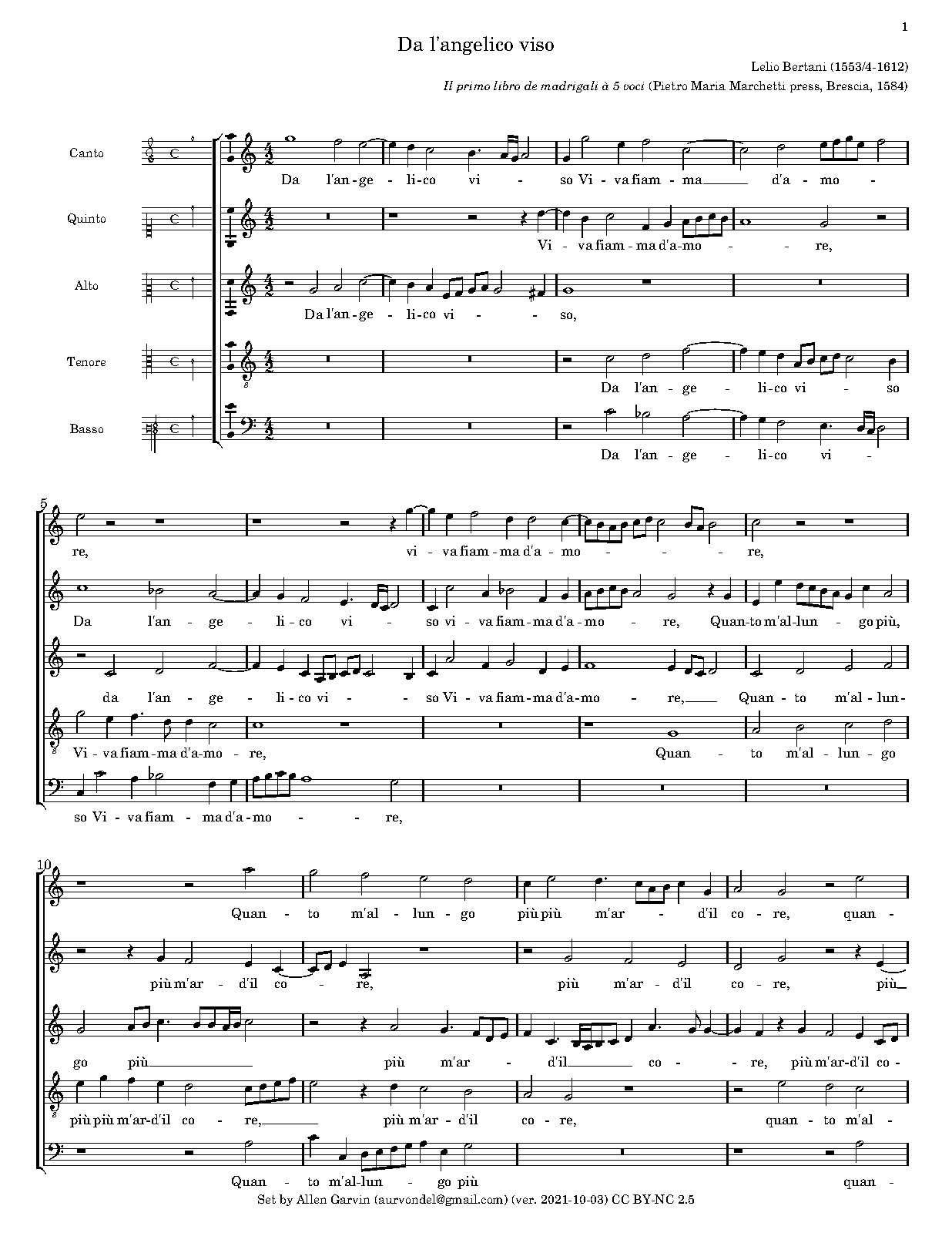 | First Publication | 1584 in Il primo libro de madrigali à 5 voci (Brescia: Pietro Maria Marchetti) |