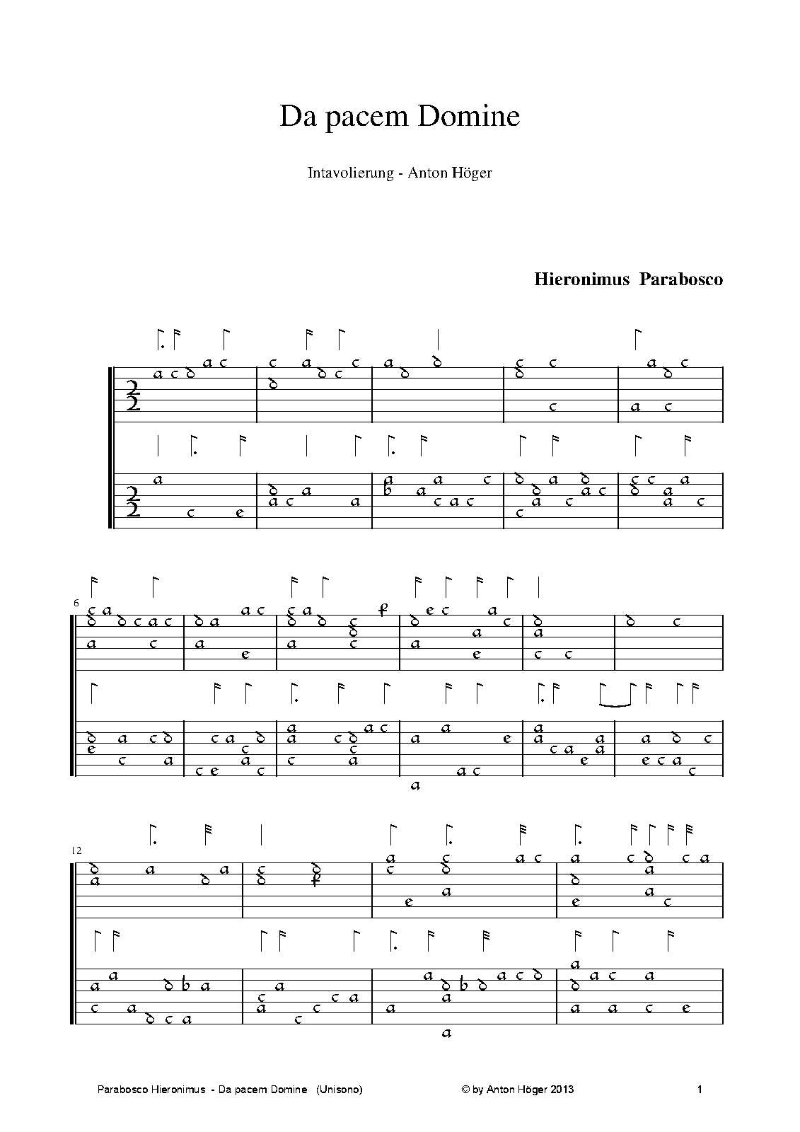 In French lute-tablature (Unisono). If performed I would look forward about a small reference to my efforts.