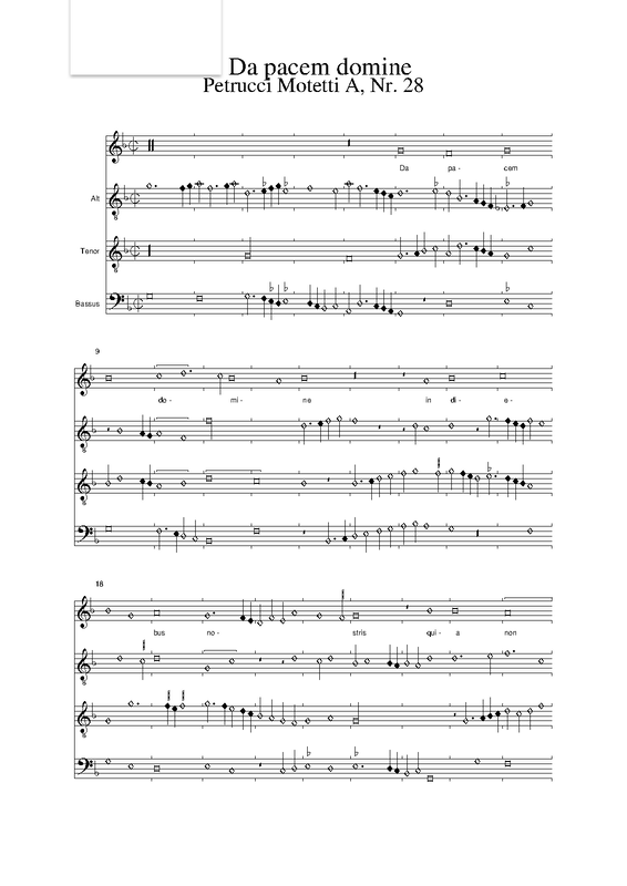 | Work Title | Da pacem Domine in diebus nostris, Motetti A No.28 |