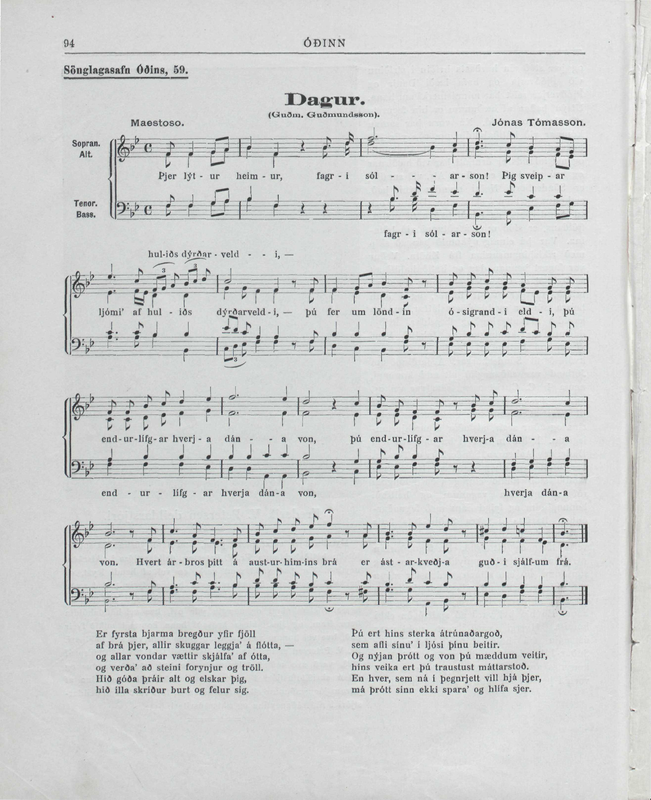 Misc. Notes Úr tímaritinu „Óðinn“, 1. júlí 1920. Sönglagasafn Óðins, 59.