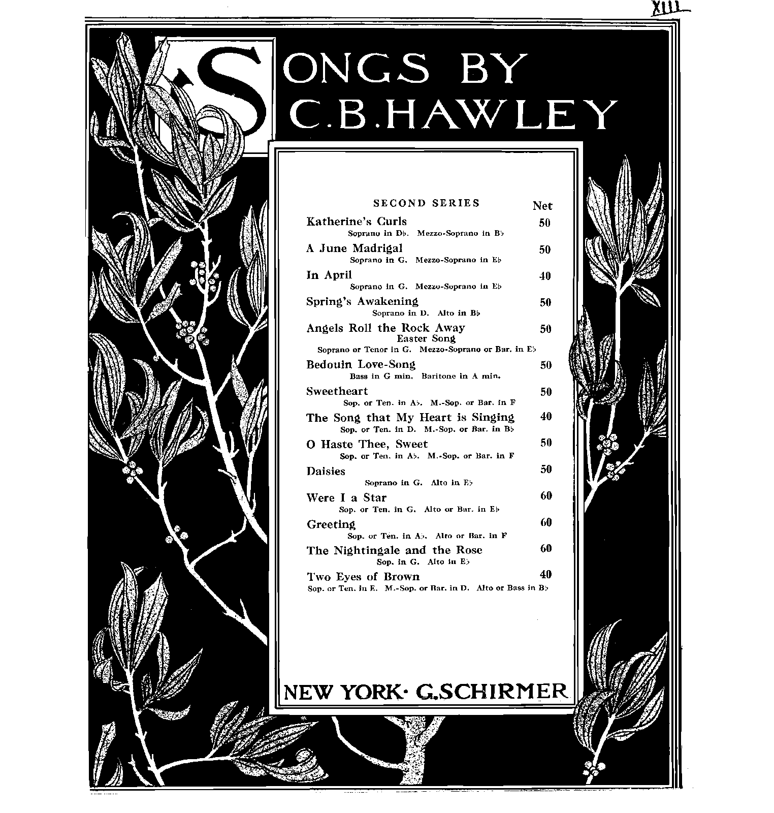 | Genre Categories | Songs; For voice, piano; For voices with keyboard; |