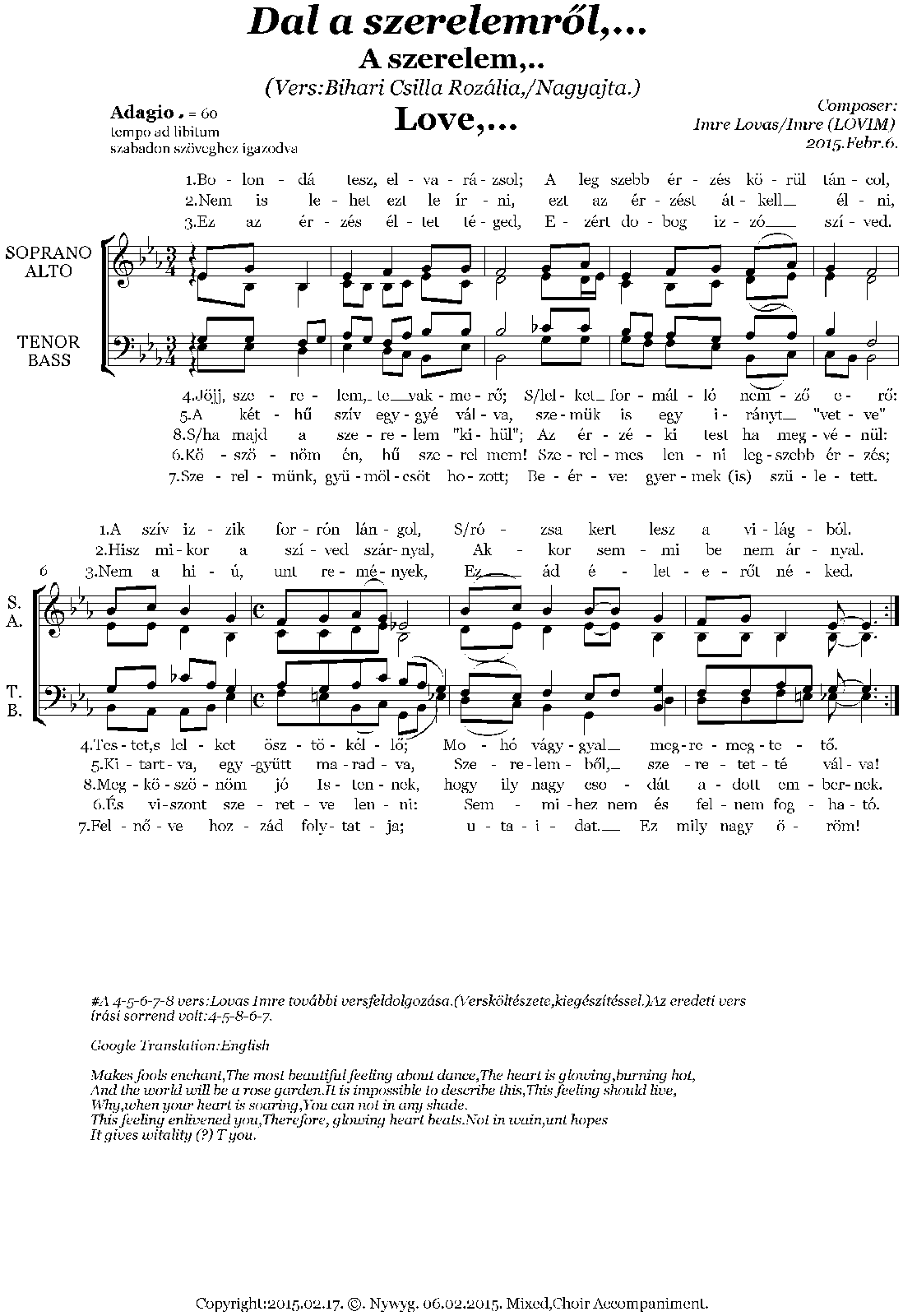 | Alternative. Title | Bolondá tesz, elvarázsol ; Song of Love |