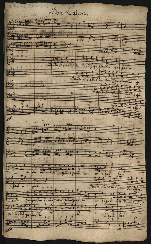 | Instrumentation | Voices: soprano, alto, tenor, bass; mixed chorus (SATB) Orchestra: 2 oboes d'amore, strings, continuo |