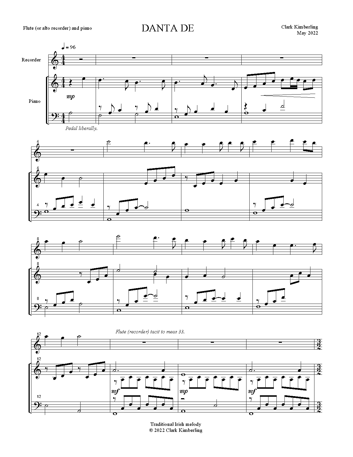 | Extra Information | An arrangement of an unnamed melody in the Irish hymnal, Danta De |