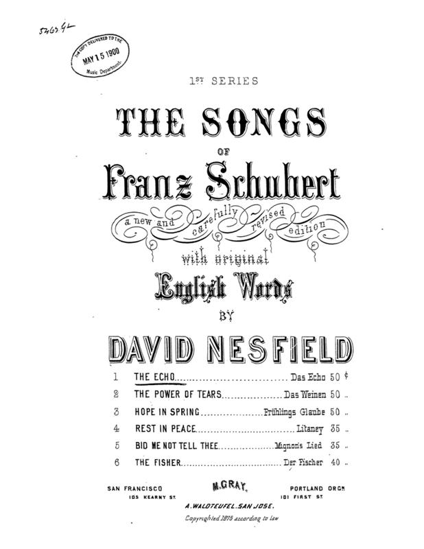 Publisher. Info. The Songs of Franz Schubert, 1st Series.