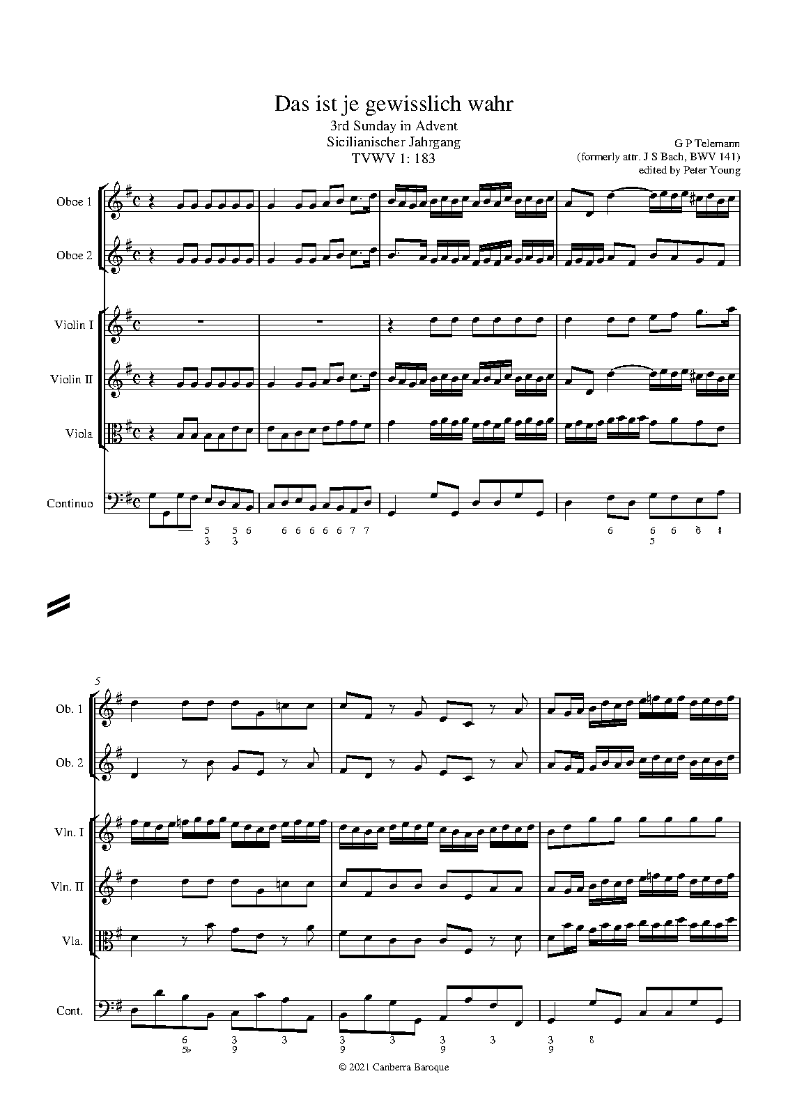 Opus/Catalogue NumberOp./Cat. No. TWV 1:183 ; (BWV 141) ; BWV Anh.III 157 ; BNB II/T/1