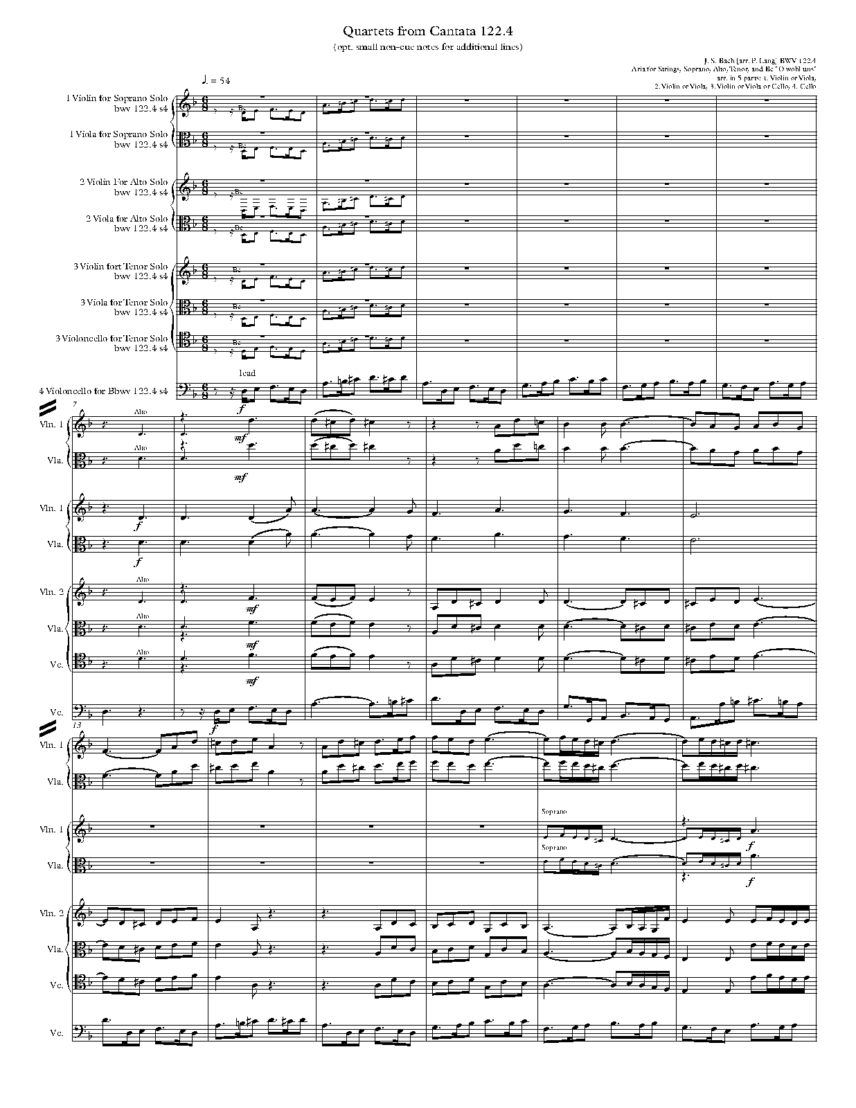 Misc. Notes The Choro of BWV 122 is the second movement of this Sonata for 2 Recorders and BC. First movement is from BWV 182, third from BWV 106 and last from BWV 1049.
