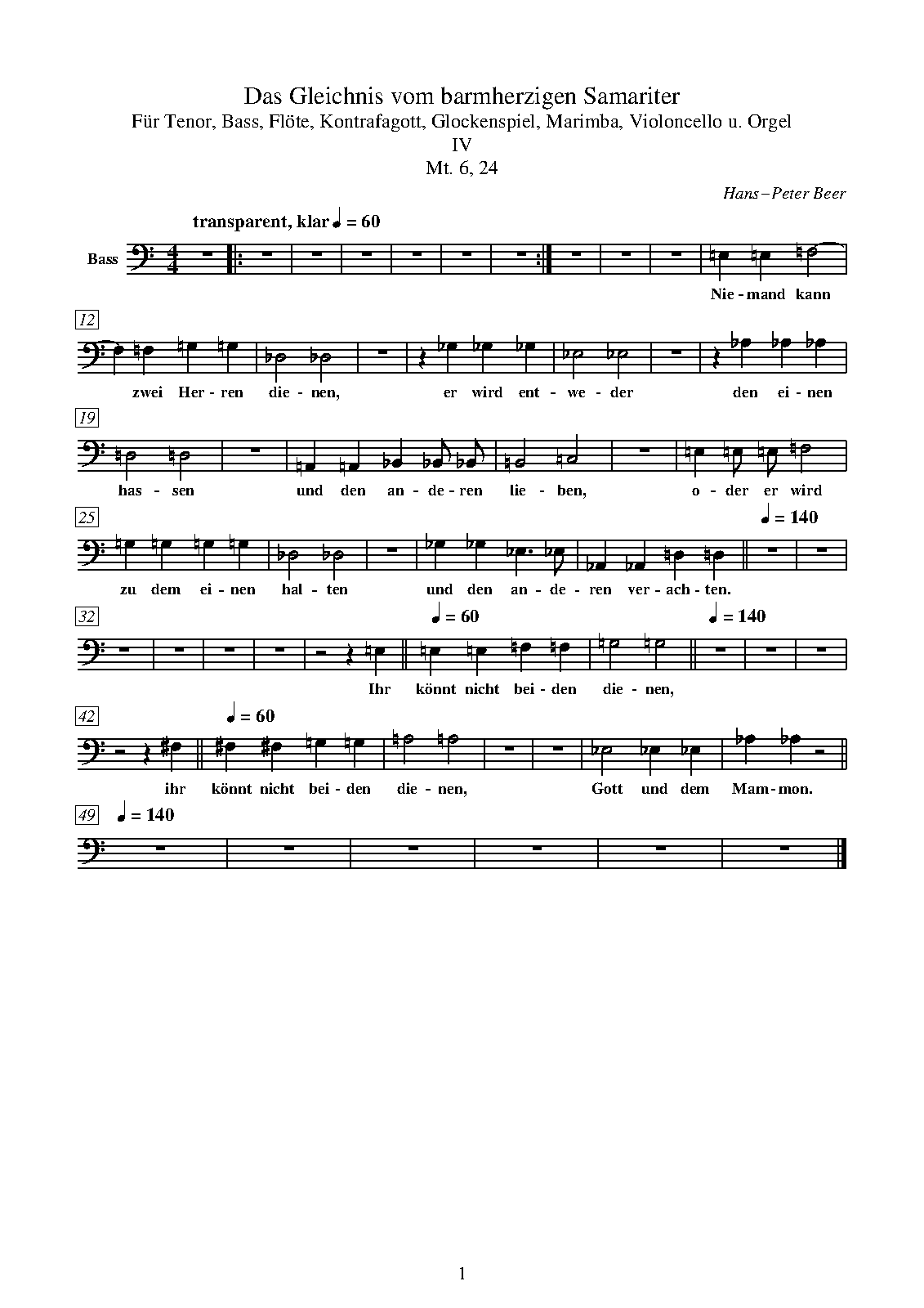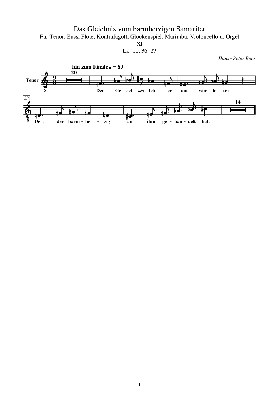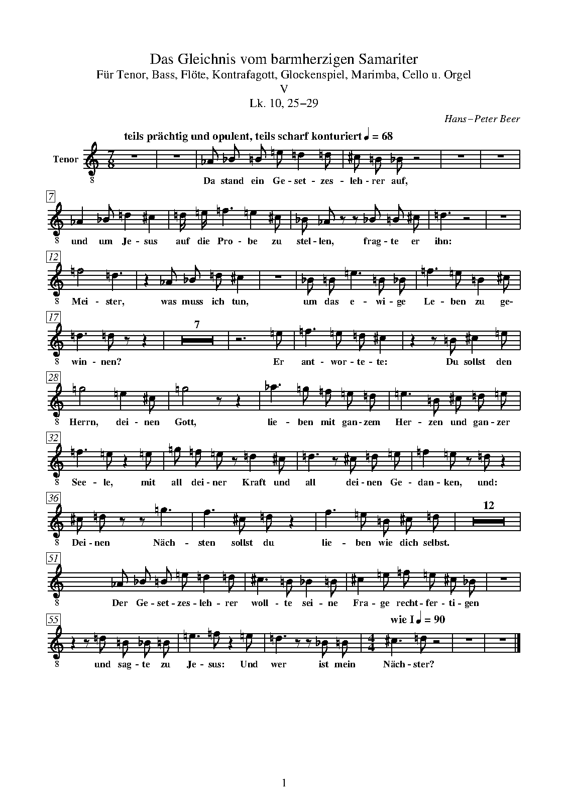 | Instrumentation | Tenor, Bass, Flute, Contra-Bassoon, Glockenspiel, Marimba, Violoncello and Organ |