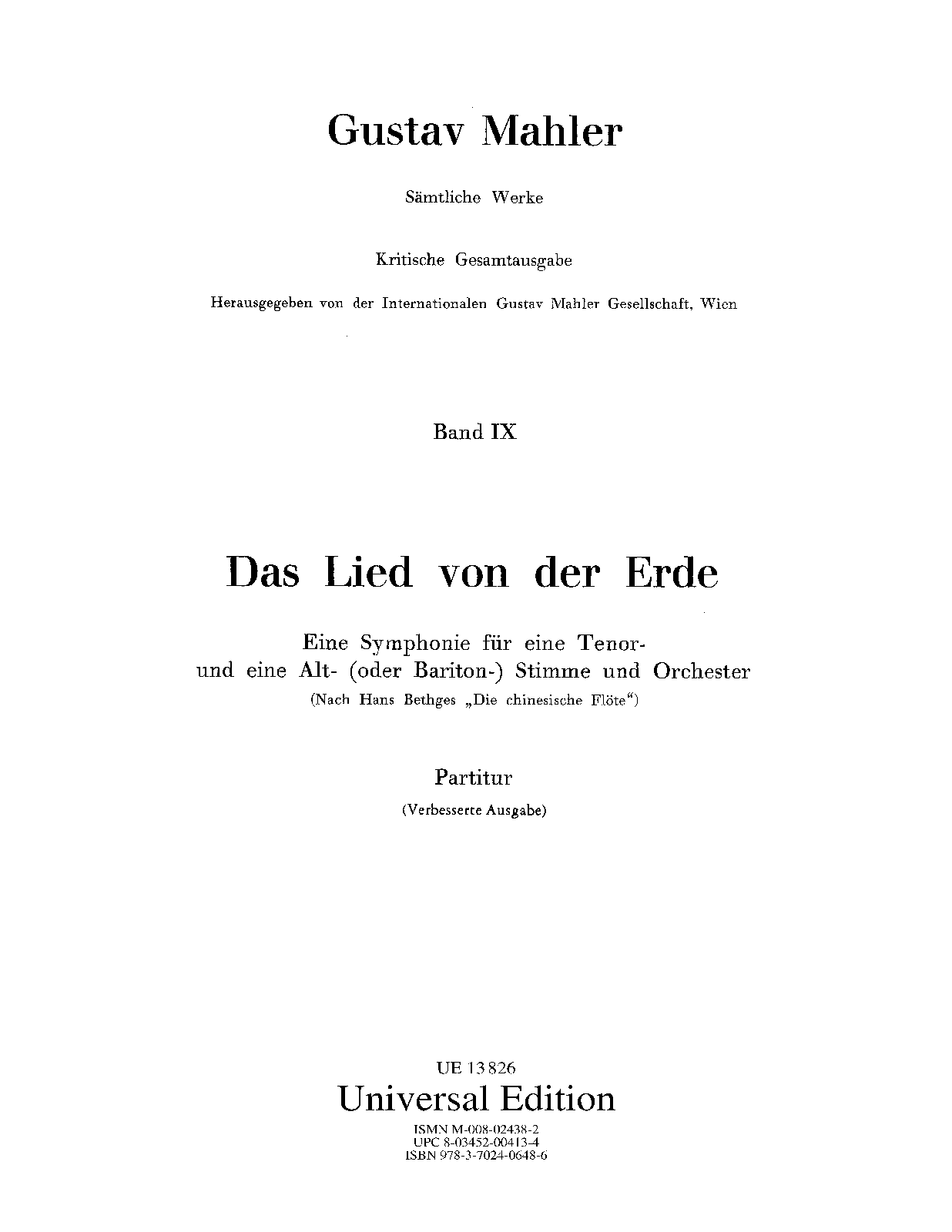 La Lido de la Tero; Le Chant De La Terre; La cancion de la tierra; La Canción de la Tierra; PESMA O ZEMLJI, simfonijska kantata; Il canto della terra; Lied von der Erde; Pesem o Zemlji; اواز زمین; The Song of the Earth; Пісня про землю