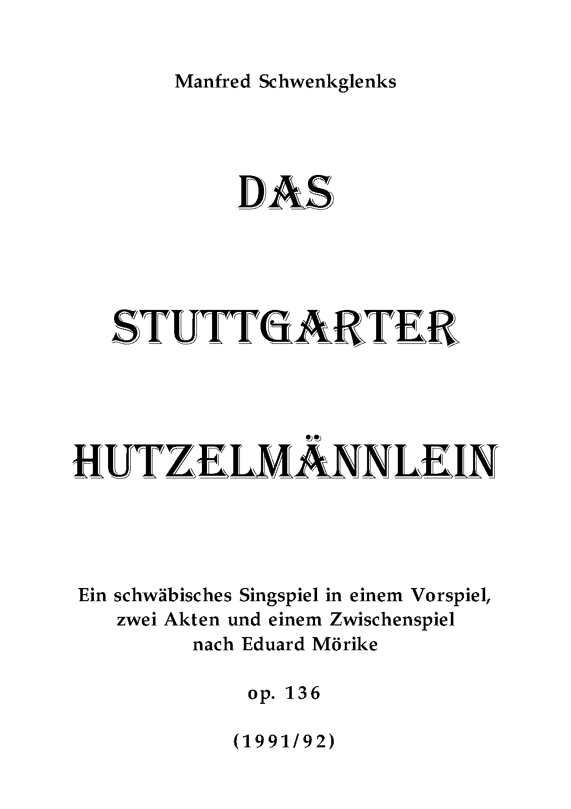 | Work Title | Das Stuttgarter Hutzelmännlein |