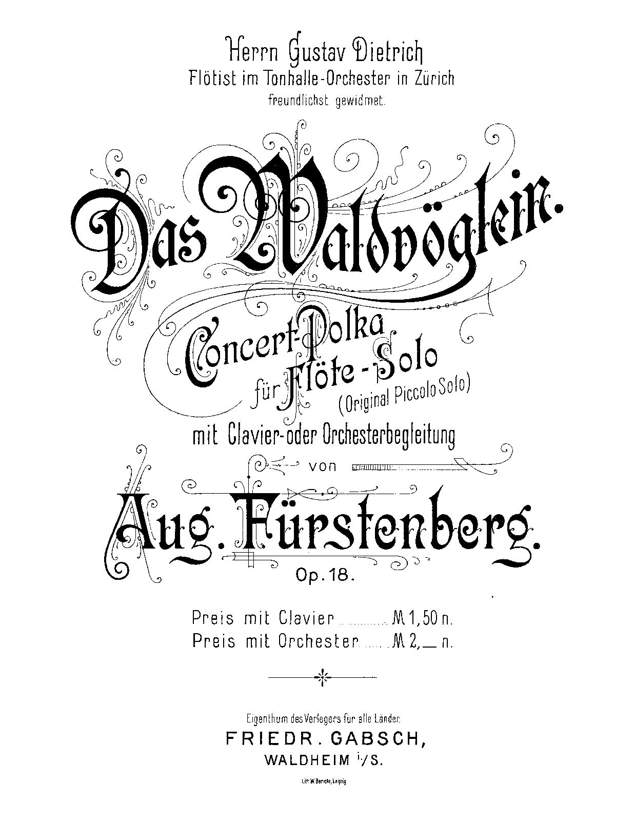 | Dedication | Herrn Gustav Dietrich, Flötist im Tonhalle-Orchester in Zürich, freundlichst gewidmet |