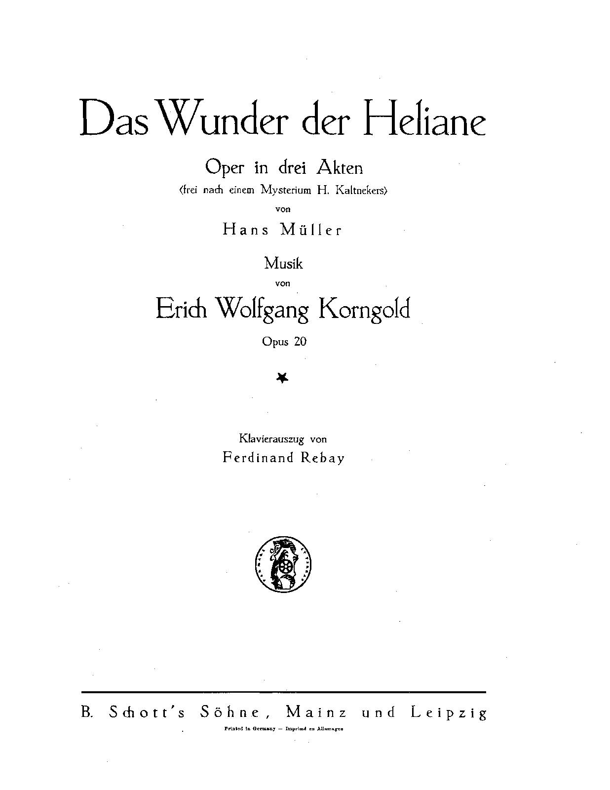 | Dedication | "Meiner Frau gewidmet" Dedicated to my wife [Luzi Korngold] |