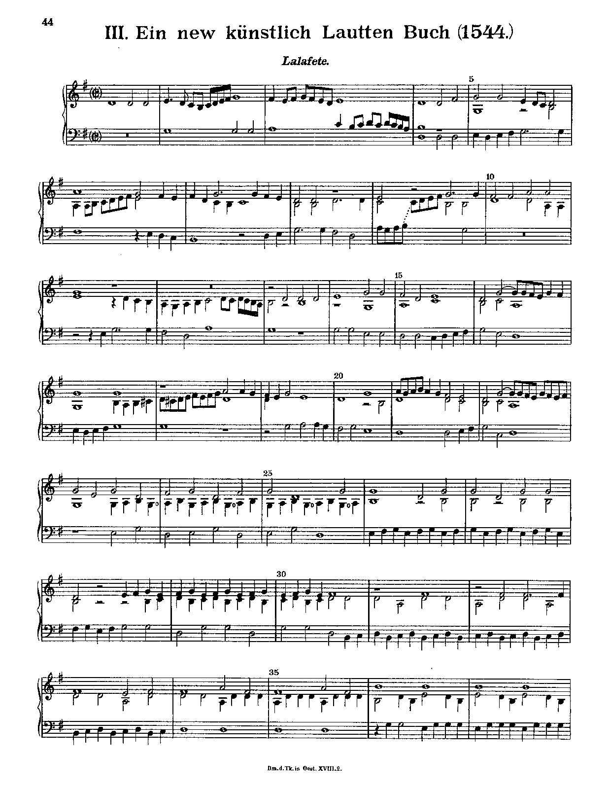 Österreichische Lautenmusik im XVI. Jahrhundert Denkmäler der Tonkunst in Österreich, Bd.37 Vienna: Österreichischer Bundesverlag, 1911. Plate Dm.d.Tk.in Oest.XVIII.2.