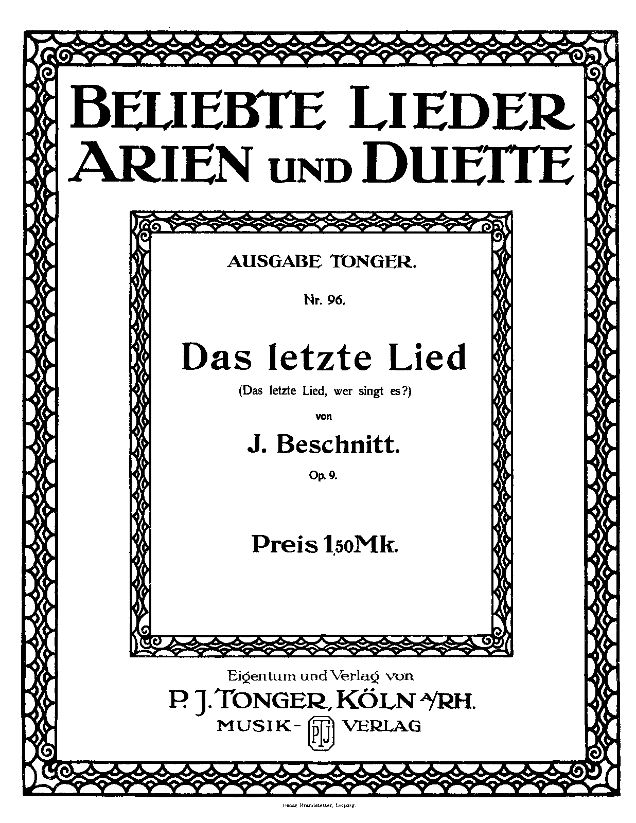also arranged for voice and piano and published in that form in 1878. This text (Das letzte Lied, wer singt es...) seems to have been set by a few composers in the late 19th century.