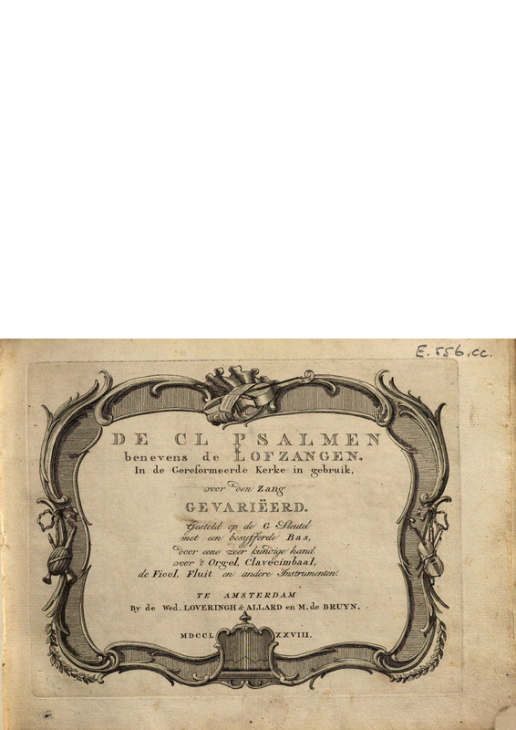 | Alternative. Title | De CL Psalmen benevens de Lofzangen. In de Gereformeerde Kerke in gebruik, voor den Zang gevarieerd. Gesteld op de G Sleutel met een besyfferde Bas, door eene zeer kundige hand voor 't Orgel, Clavecimbaal, de Fiool, Fluit en andere Instrumenten. |