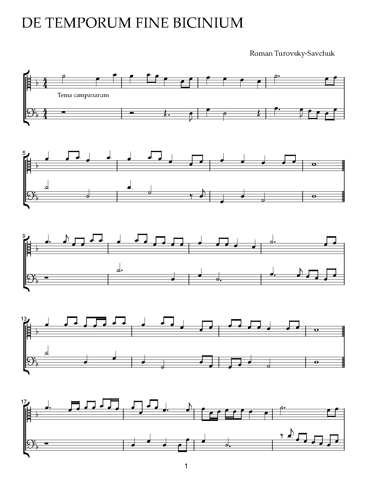 | Movements/SectionsMov'ts/Sec's | 1 bicinium |
