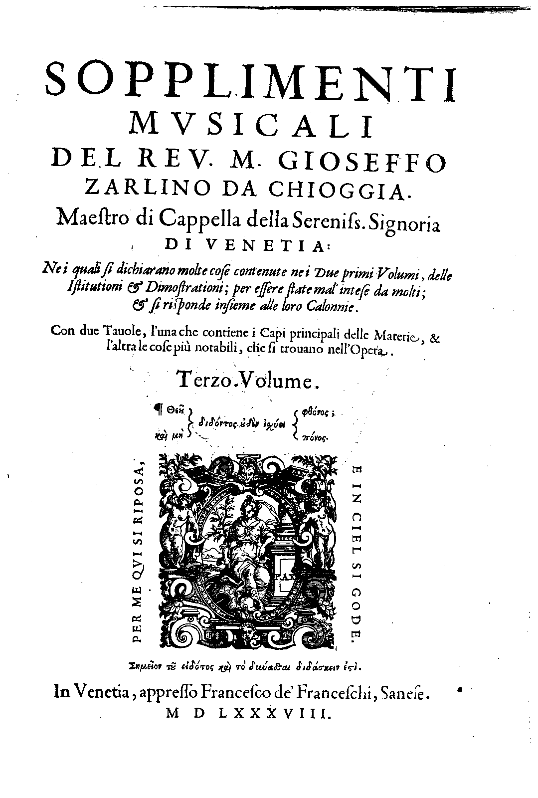 Frontispiece information: Il Quarto, & Ultimo Volume. Contenente il Trattato della Patientia, il Discorso del vero Anno, & Giorno della morte di Christo, l'Origine de i R.P. Cappuccini, Et le Risolutioni d'alcune Dimande fatte intorno la correttione del Calendario di Giulio Cesare. Con due tauole, l'una posta nel principio, che serve al Trattato della Patientia; l'altra nel fine del libro, che serue à tutte le nominate opere.
