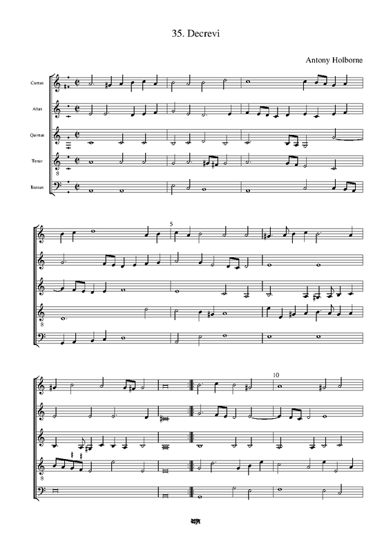 | Instrumentation | 5 instruments - viols, violins, or wind instruments (recorders, crumhorns, cornetts etc.) |