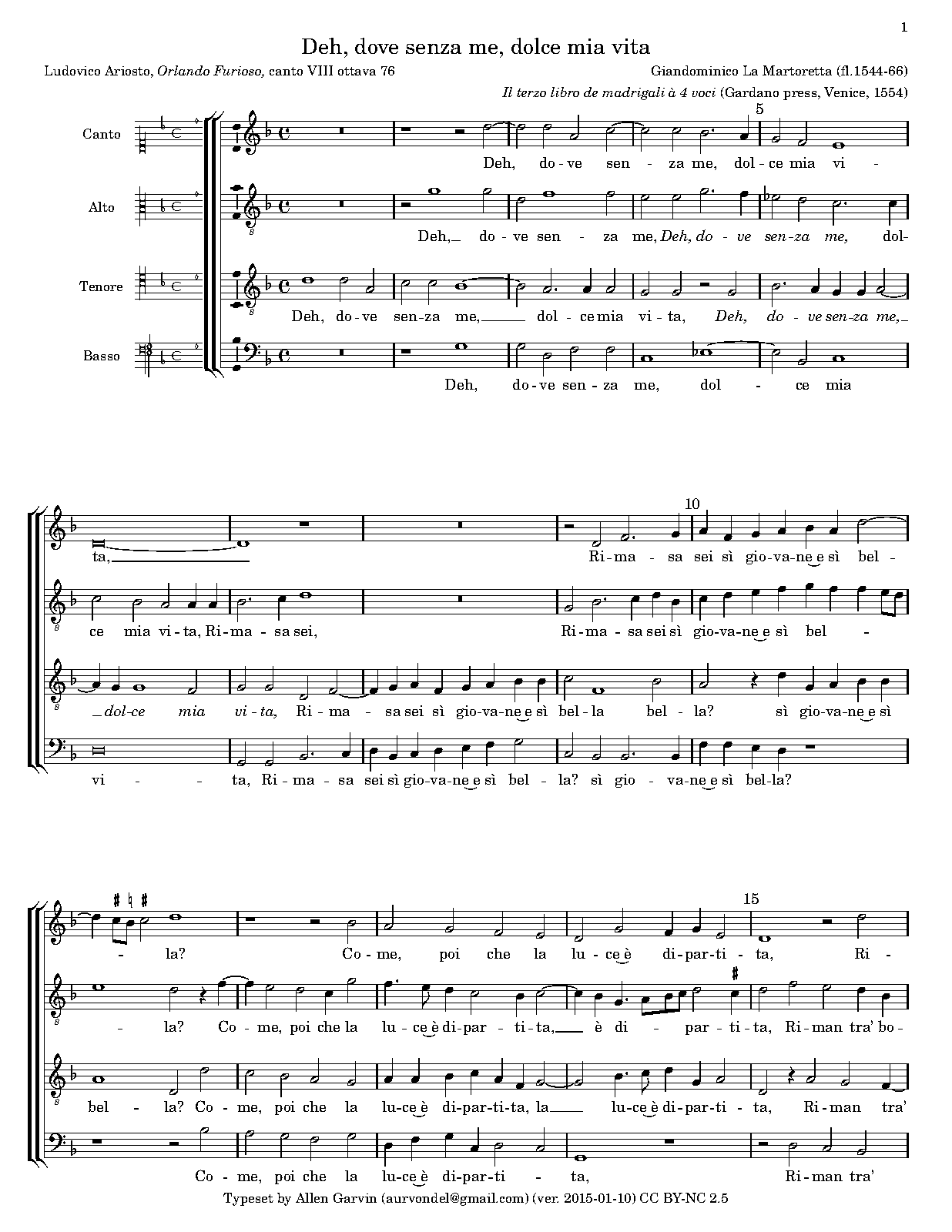 | Work Title | Deh, dove senza me, dolce mia vita |
