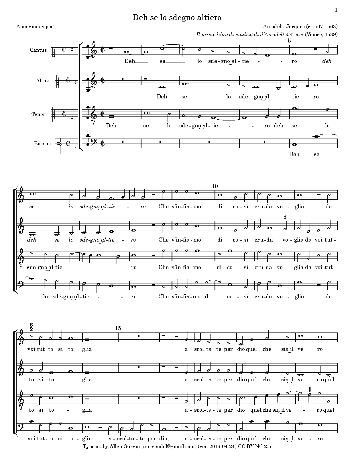 | First Publication | 1539 in Madrigali a 4 voci, Libro 1 (No.30) |